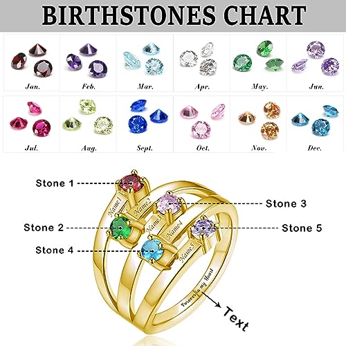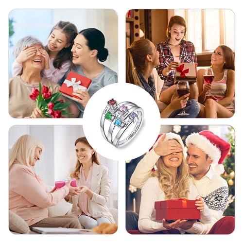 • ❤ PERSONALIZED BIRTHSTONE RINGS ❤ Engraved with custom text, this mother's ring 5 stones can match with any clothing in daily life or at big events. This grandma ring 5 stones is a superb gift for anniversary, back to school, birthday, Christmas, dating, engagement, first communion, graduation, Mother's Day, National Girlfriends Day, party, proposal, summer vacation, Valentine's Day, wedding, Women's Day, etc.