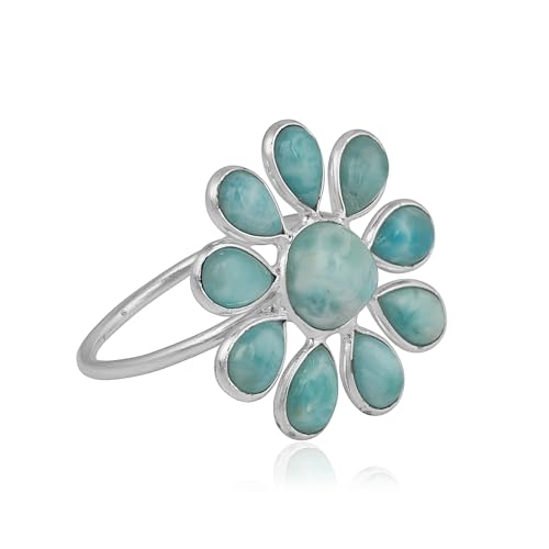 More information about Caribbean Serenity Larimar 925 Sterling Silver Flower Chunky Ring