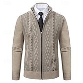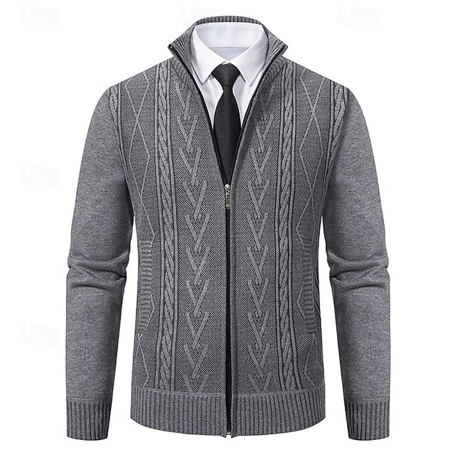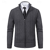 More information about Men's Sweater Cardigan Sweater Ribbed Knit Regular Tops Knitted Geometric Standing Collar contemporary Contemporary Smart Casual Casual Daily Wear Clothing Apparel Fall Winter Light Grey Dark Grey M L XL