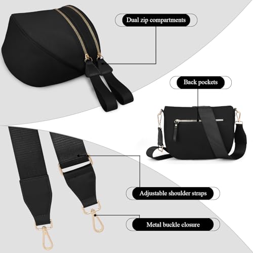 • ✔️ 【Fashion Crossbody Bag】: A chic crossbody bag - vintage solid color, with fine gold double zipper and contemporary large pull ring, fashionable and versatile