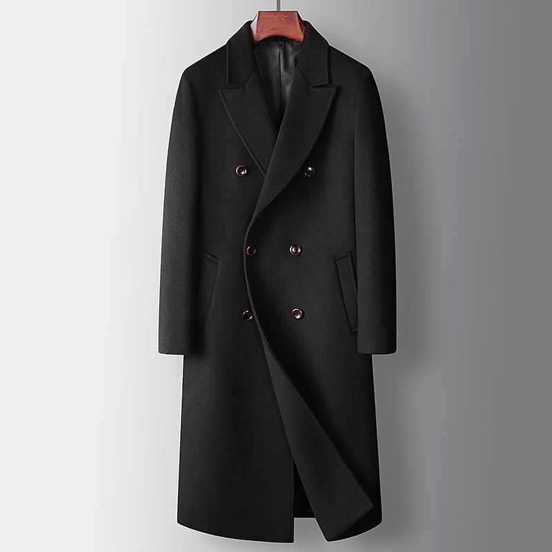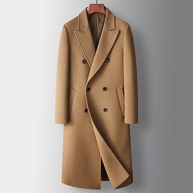 Men's Winter Coat Wool Coat Peacoat Daily Wear Vacation Fall Winter POLY Thermal comfortable Outdoor Outerwear Clothing Apparel Fashion Warm Ups Solid Colored Pocket Turndown Double Breasted