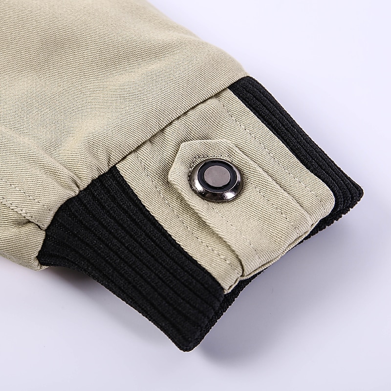 Men's Bomber Jacket Lightweight Jacket Summer Jacket Work Jacket Sports Climbing Windproof comfortable Patchwork Fall Solid Color Stand Collar Cotton Black Army Green Red Blue Khaki Jacket
