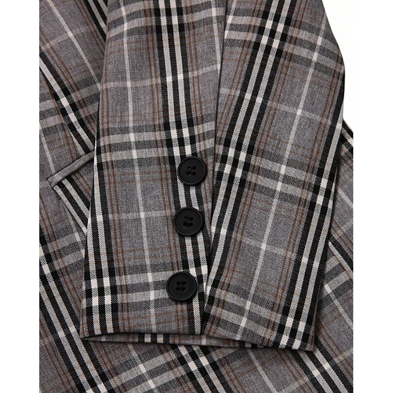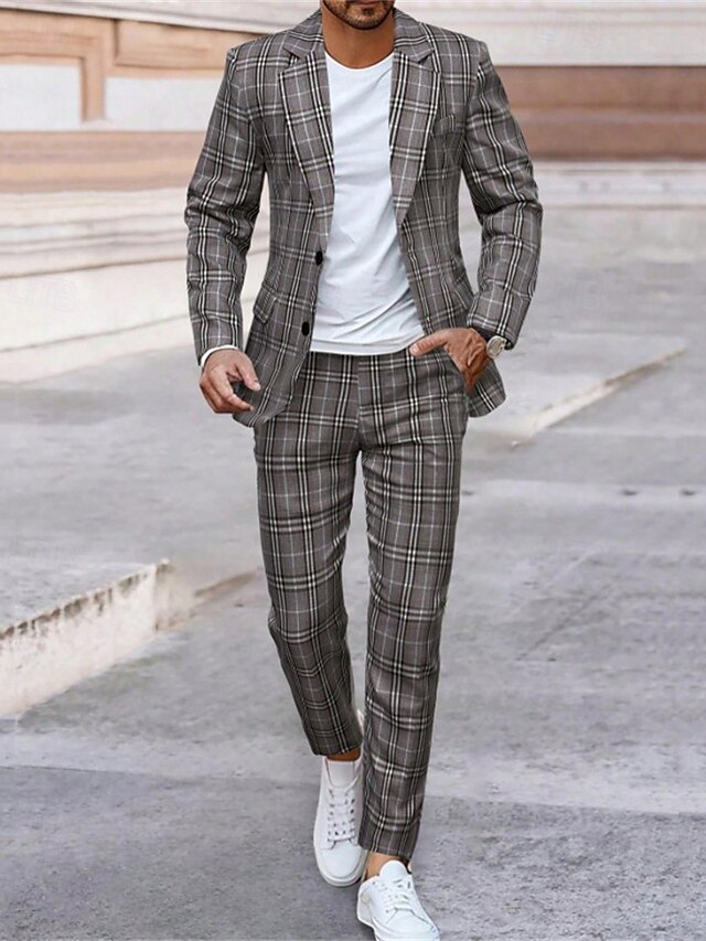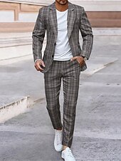 More information about Men's Blazer Set Business Cocktail Party Wedding Party 2 Piece Fashion Casual Spring Fall Polyester Plaid Pocket Buttons snug Single Breasted Blazer Gray
