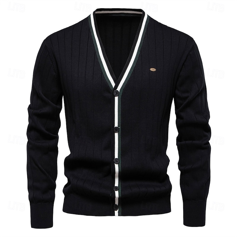 $27.99 - Men's Cardigan Sweater Knit Button Up with White Trim Striped Deep V Knitwear Elegant School Training Clothing Apparel Bishop Sleeve Fall Winter Black Navy Blue S M L 2025. Shop for cheap Men's Elite Sweaters & Cardigans online? Buy at lightinthebox.com on sale today!
