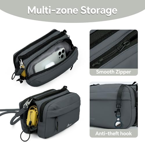 Origin: ImportedClosure type: ZipperRFID Blocking & Safer Carry – Built-in RFID-blocking pocket helps protect credit cards, passports and IDs from unauthorized scans; smooth zippers and a zipper-to-D-ring clip help keep valuables secure on the go.Water-Resistant, Wipe-Clean Fabric – Durable nylon/poly exterior sheds light rain and splashes—great for beach days, boats and unpredictable weather; lining is easy to wipe clean after outdoor use.3-Section Organizer w/ Center Bottle Slot – Two zip compartments hold phone, wallet, keys, meds and small essentials; open-air middle slot separates wet items (umbrella/towel) from dry gear. Best fit: slim 12–16 oz bottles; using the bottle slot reduces side-compartment capacity. For stability, insert bottle upright and use the inner elastic keeper.Rope-Style, Slide-Adjustable Strap – distinctive rope strap design allows length adjustment by sliding for shoulder or crossbody wear. The end knot is permanently sealed and cannot be untied, preventing loosening. Metal cord tip keeps the rope from fraying. Designed for light-to-moderate loads for better comfort during walks, errands, or sightseeing.Made for Travel, Errands & Outdoors – Compact yet surprisingly roomy; sporty, neutral tone pairs with casual outfits. Size: 9.5 L × 5 H × 3 D (24.1 × 12.7 × 7.6 cm). Fits phone, small wallet, sunglasses, sanitizer and daily meds; add a slim bottle or umbrella when needed. Perfect for everyday use. supreme materials and excellent craftsmanship ensure long-lasting durability.