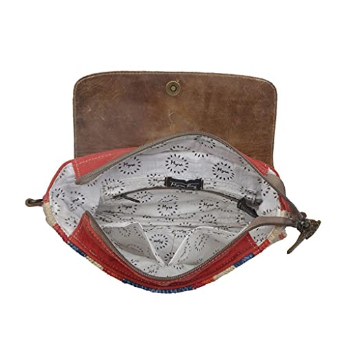 Fabric type: LeatherClosure type: ZipperLining: Leather{Lightweight Canvas Purse} Myra Women's Win Win Small Crossbody Bag Multi is the perfect accessory for any outfit. Made from high-quality canvas and premium leather, this crossbody bag features a colorful pattern with a leather flap. The lightweight construction makes it easy to carry, and the small size is perfect for carrying your essentials. Whether you're headed to the office or out for a night on the town, Myra Women's Win Win Small Crossbody Bag Multi is the perfect addition to your look.{Perfect for Day or Weekend Trips} Myra Women's Win Win Small Crossbody Bag is ideal for travel, grocery shopping, day trips, beach trips, picnics, farmersÍ markets, overnight stays, and weekend adventures. The lovely crossbody bag is spacious and has multiple pockets to keep you organized and secure and is also durable and perfect for carrying all your essentials while on the go. Dimensions: Width 12î x Height 8.5î with a Handle/Strap of 22î{Hand-Crafted Quality} We follow a specific process in the creation of our upcycled canvas purses and crossbody bags which includes material selection, washing, cutting, assembling, sewing, and finishing before our leather-trimmed womenÍs canvas bags pass several quality standard checks. Each bag is uniquely crafted and has its own characteristics due to the various recycled materials used. We know youÍll love this quality bag.{Vintage Versatility} Myra Women's Win Win Small Crossbody Bag is the perfect accessory for any outfit. It is lightweight and convenient, with a top zip closure under the flap-over and a zippered pocket on the back. The interior is fully lined and features one zippered pocket and two slip pockets. The adjustable and removable leather strap makes it easy to carry, and the stylish bag itself is a great size for everyday use.{Handcrafted for Uniqueness} With a classic boho purse look, this canvas and leather bag makes an excellent Birthday gift, New YearÍs gift, Party gift, Anniversary gift, Travel gift, or Vacation gift. Sure to bring admiring comments while also defining your own personal style. Perfect for everyday use. High quality materials and excellent craftsmanship ensure long-lasting durability.