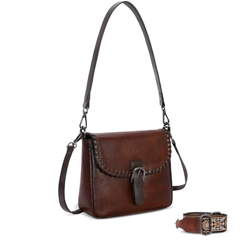 More information about HESHE Genuine Leather Crossbody Bags for Women Satchel Purses Boho Shoulder Bag with 3 Straps Designer Cross Body Bag