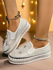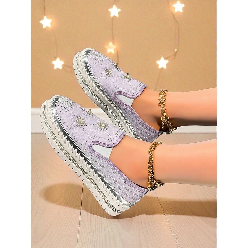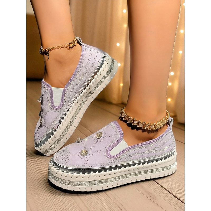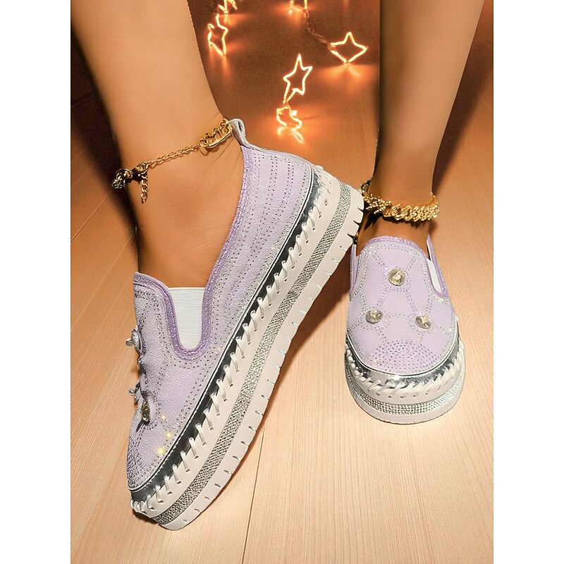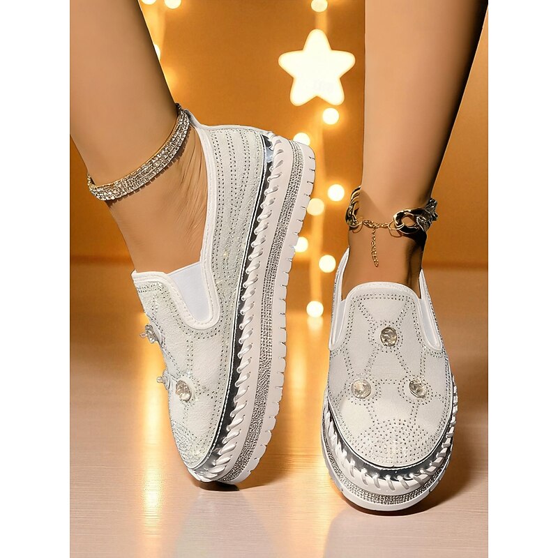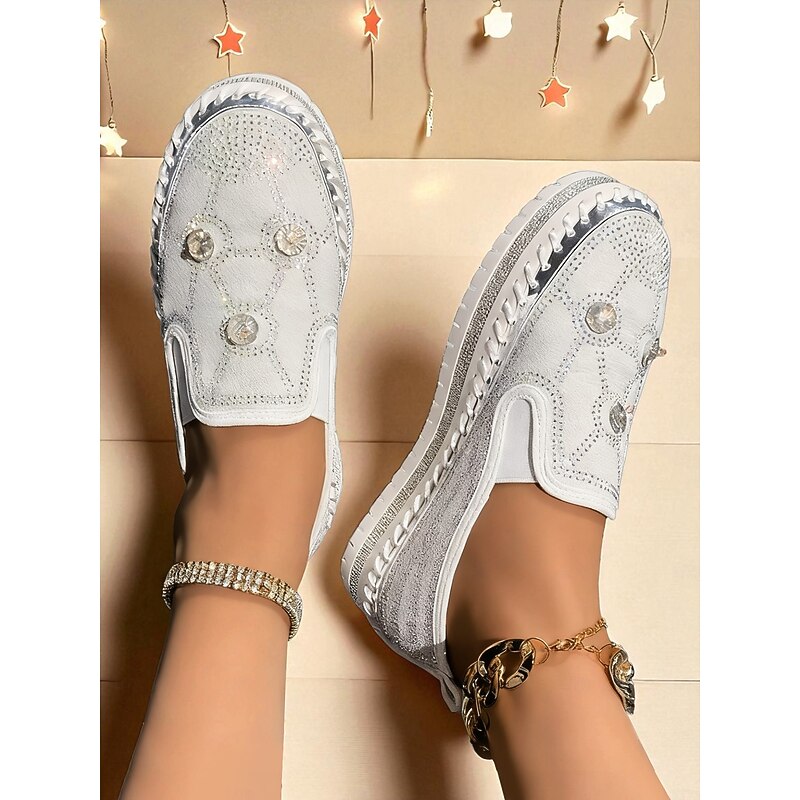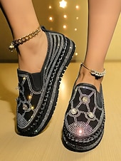Highlights - Crafted with sturdy PU and synthetic leather for lasting quality - Features sparkling rhinestone embellishments for added style - Round toe design for comfort and versatility - Rubber outsole for reliable traction - Stay on trend in 2025 with glitter, crystal, sequined, and jeweled details