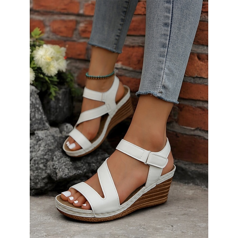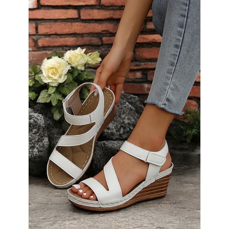 - Trendy wedge sandals made of faux leather
