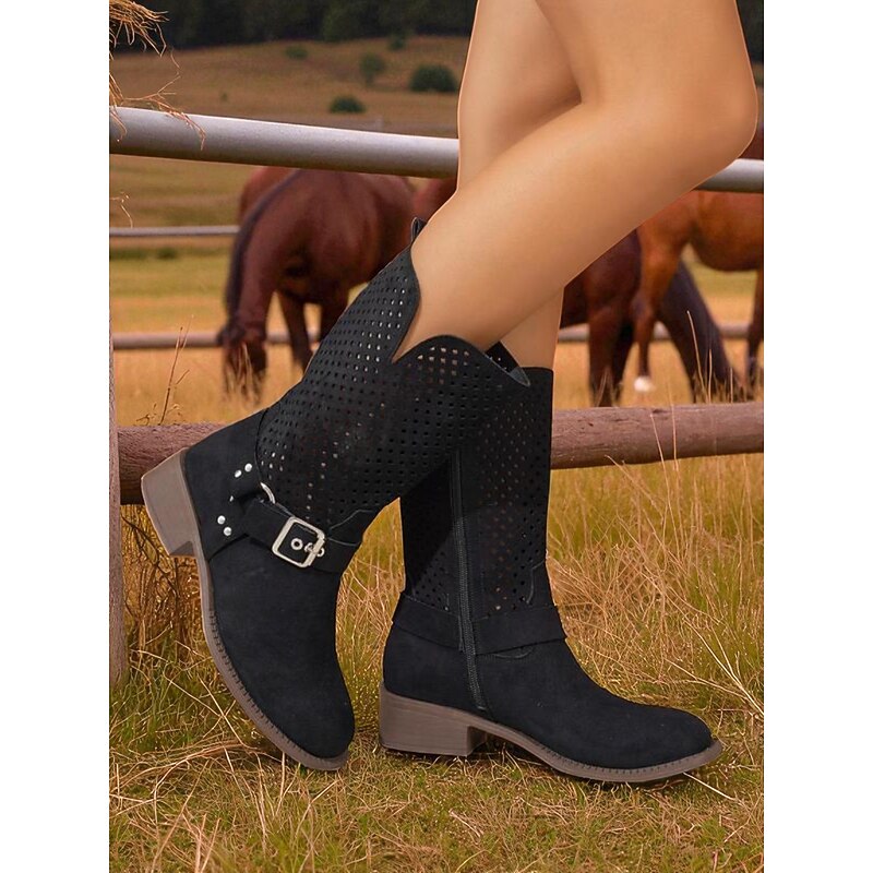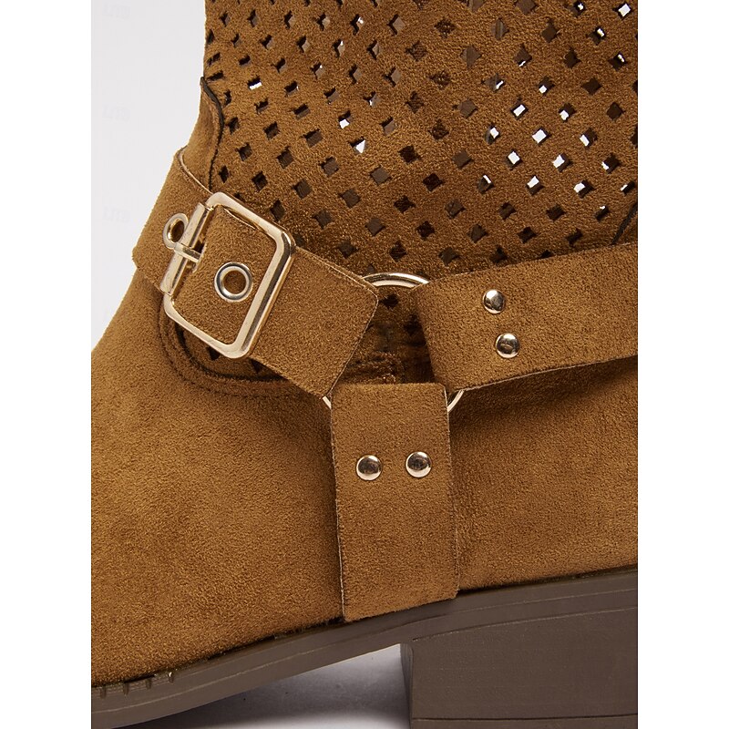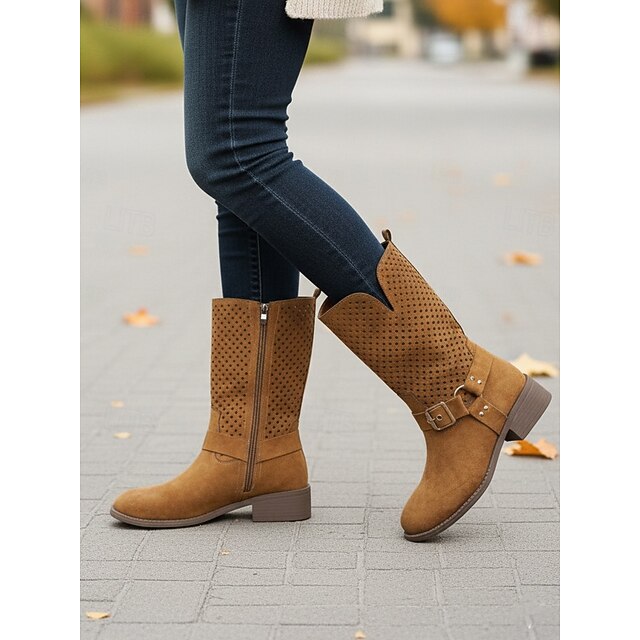This Women's Brown Faux Suede Mid Calf Boots with Cutout Design and Buckle Strap – Casual Western Style Boots for Fall, Outdoor and Streetwear combines elegant design with practical functionality. Every detail has been carefully considered to ensure you get the top possible experience. The premium construction means this product will serve you well for years to come.