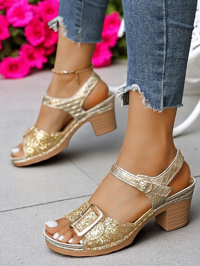 Why Choose Women's Gold Glitter Block Heel Sandals – Sparkling Mid-Heel Party Shoes for Summer Celebrations, Garden Parties and Evening Outfits?