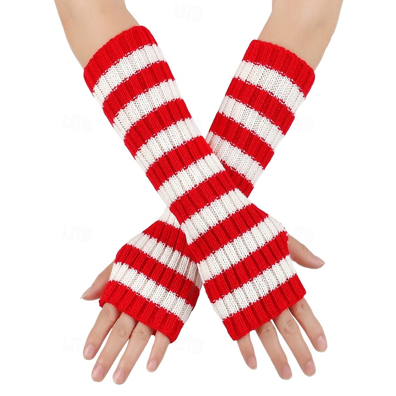 $7.99 - Women's Christmas Striped Fingerless Gloves - Soft Knit, Red & White Stripes, Perfect for Holiday Parties & Winter Festivities 2025. Shop for cheap Christmas Accessories online? Buy at lightinthebox.com on sale today!