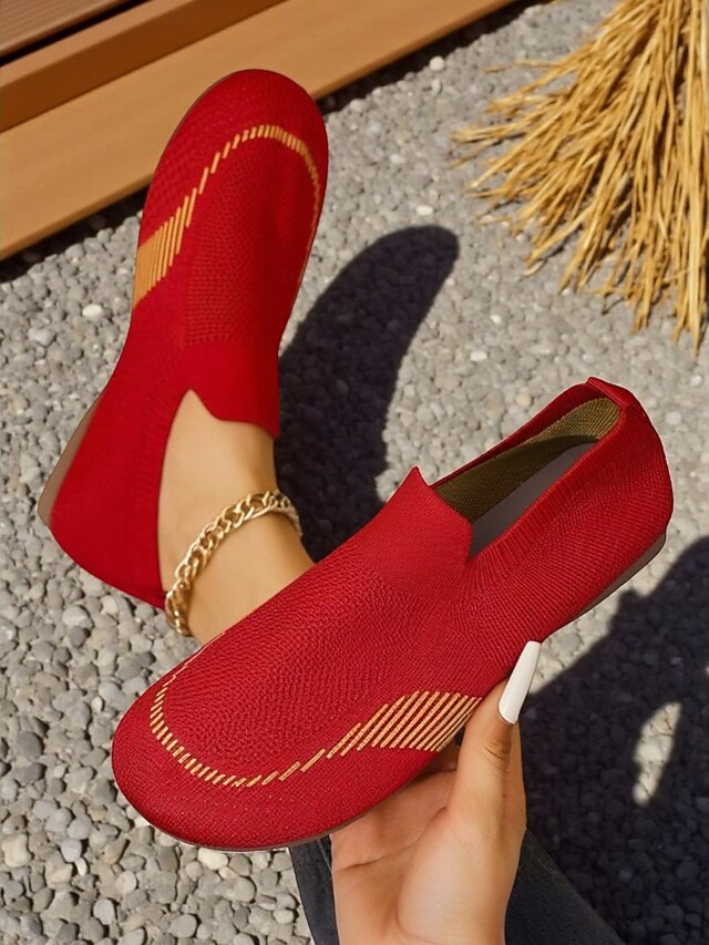 Why Choose Women's Wide Fit Red Flyknit Slip-On Shoes – Breathable Lightweight Casual Loafers for Office, Travel and Daily Comfort?