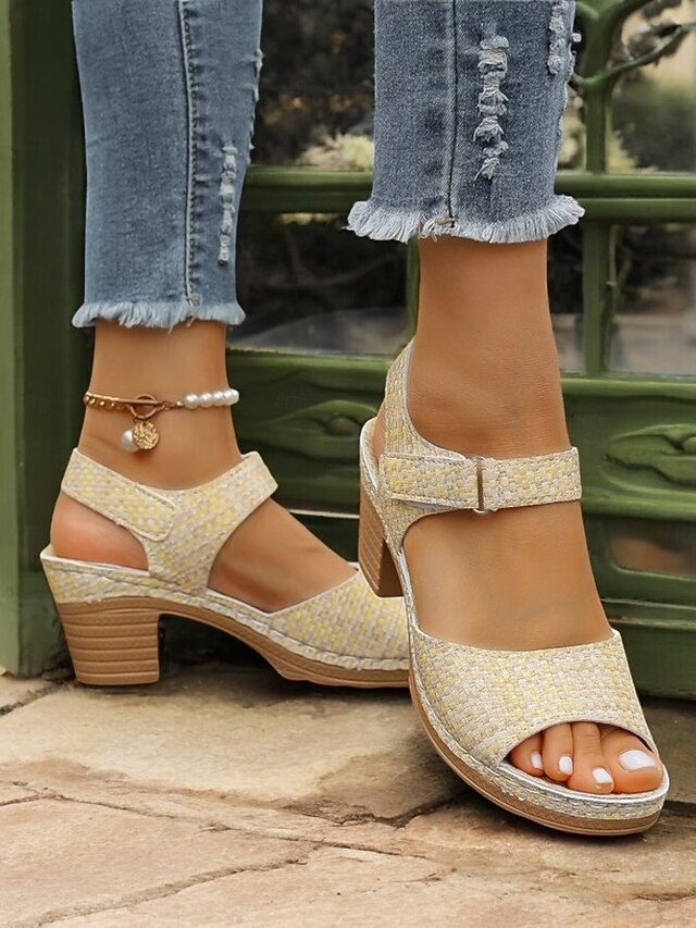 This Women's Yellow Woven Block Heel Sandals with Adjustable Strap, cushy Open-Toe Design, Perfect for Summer Outings, Casual Wear, and Beach Vacations combines elegant design with practical functionality. Every detail has been carefully considered to ensure you get the best possible experience. The finest construction means this product will serve you well for years to come.