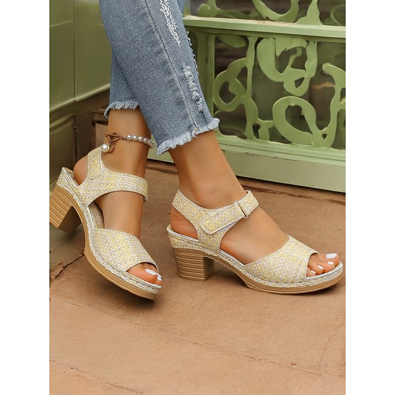 Why Choose Women's Yellow Woven Block Heel Sandals with Adjustable Strap, plush Open-Toe Design, ideal for Summer Outings, Casual Wear, and Beach Vacations?