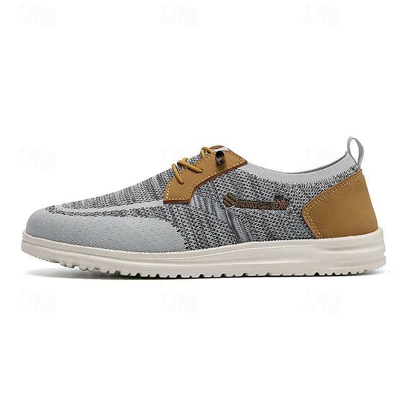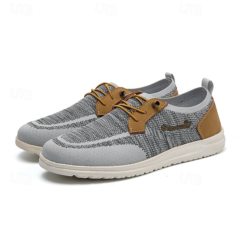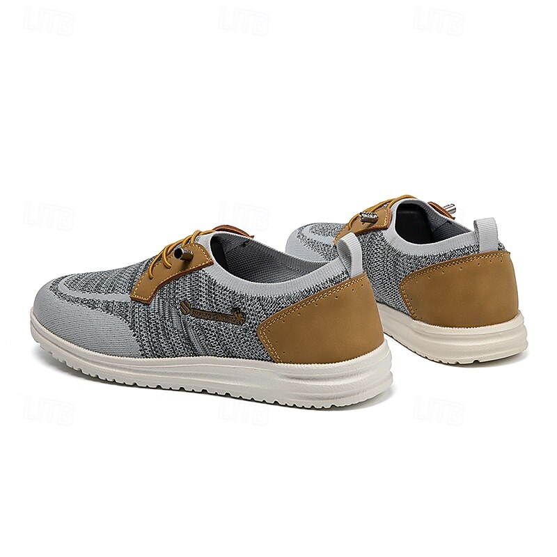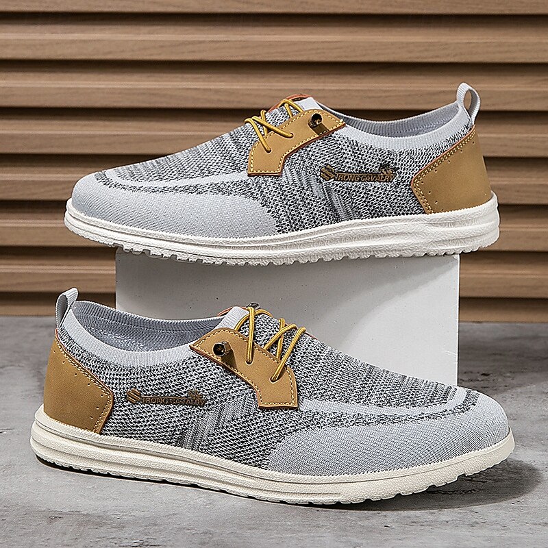Men's Grey Knit Sport Shoes with Leather Accents and Lace-Up Design – pleasant Casual & Outdoor Footwear