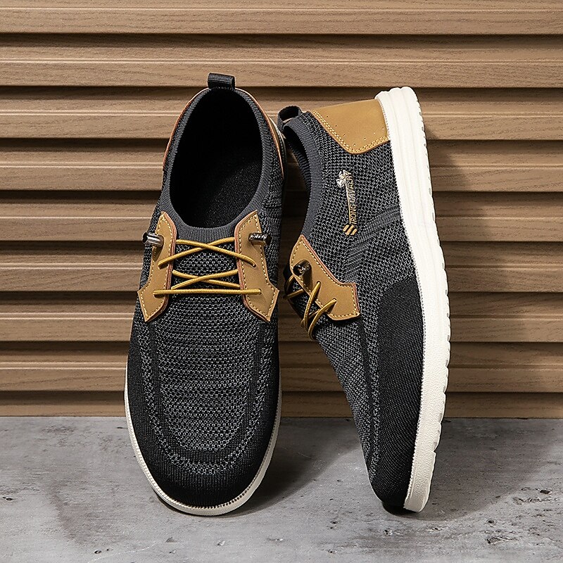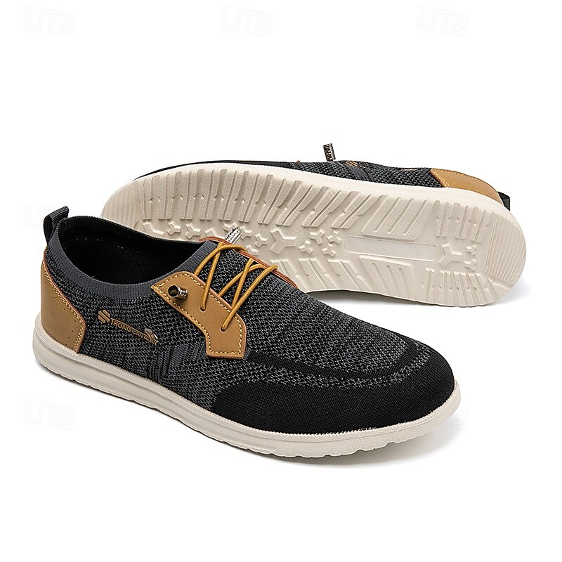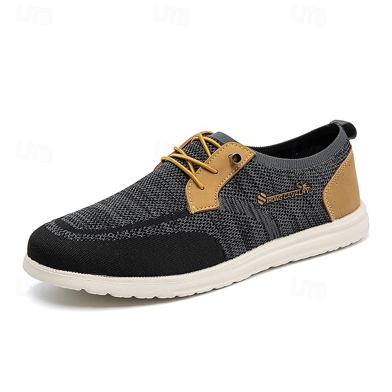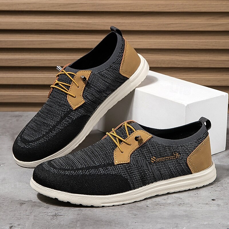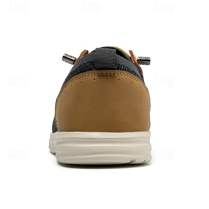 Highlights [Fabric] : Expertly crafted with a breathable knit and PU leather upper, these men's sport shoes deliver the perfect blend of comfort and durability. The knitted fabric allows for flexibility and airflow, keeping your feet comfortable during extended wear. [Style & Fit] : Designed with a contemporary low-cut silhouette, these shoes offer both up-to-date appeal and easy wearability. The lace-up closure ensures a secure fit, adapting to your foot's natural shape for maximum comfort. [Design Highlights] : Featuring contrasting tan leather accents on the lace-up panel, these shoes add a touch of sophistication to your casual wardrobe. The round toe shape and clean white EVA outsole provide not only a sleek look but also enhance grip and slip resistance. [Occasions] : Ideal for casual outings, everyday activities, or a relaxing weekend walk, these shoes effortlessly combine style and function to complement any casual ensemble. [Size Range] : Available in a wide range of sizes to suit your needs, from US7 / EU39 / UK6 to US12 / EU45 / UK11, ensuring a comfortable fit for various foot sizes. Perfect for everyday use. excellent materials and excellent craftsmanship ensure long-lasting durability.