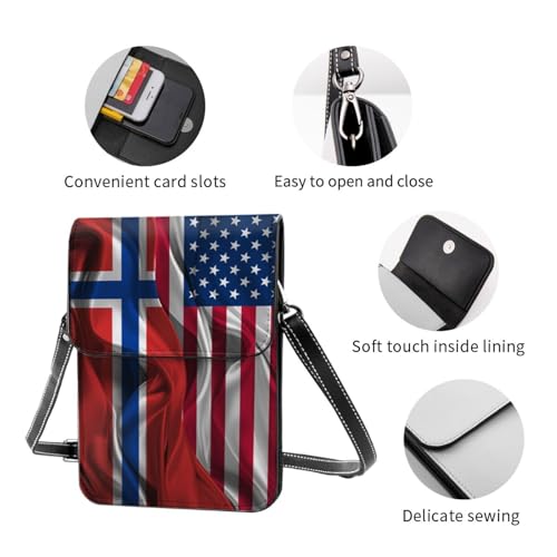 Fabric type: Microfiber PU LeatherOrigin: ImportedClosure type: BuckleLining: LeatherThis Vinatge America Norway Norwegian Silk Flag small crossbody purse for women is made of microfiber soft leather, printed with vintage patterns which is lightweight, durable, sophisticated and nice appearance.This Vinatge America Norway Norwegian Silk Flag small cross body cell phone bag for girl can store 2 mobile phones with a screen size of 6.5 inches and below. The interior of the wallet is lined with plush material to avoid friction with the mobile phone and cause any damage.This Vinatge America Norway Norwegian Silk Flag small crossbody cell phone purse has 3 open pockets inside to keeps things organized, it can store mobile phones, credit cards, keys, lipsticks, cash and other small personal stuffs conveniently. And the magnetic buckle opening and closing make it easy to take items out.This Vinatge America Norway Norwegian Silk Flag mini over shoulder purse bag wallet for cell phone will be a good gift for your wife, girlfriend, sisters, mom, grand mom or female friends to show your fashion taste or build a better friendship on birthday, Valentine's Day, Mother's Day, Thanksgiving Day, Christmas or New Year.This Vinatge America Norway Norwegian Silk Flag mobile phone bag comes with a removable and adjustable shoulder strap that you can carry it on one shoulder or across the body when shopping, traveling, camping, walking, dating, wedding, daily, working or any outdoor activities. Perfect for everyday use. excellent materials and excellent craftsmanship ensure long-lasting durability.