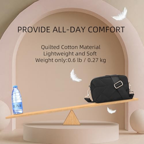 Fabric type: Polyester fibreOrigin: ImportedClosure type: ZipperJoin Prime Cancel anytimeLIGHTWEIGHT PUFFER BAG FOR WOMEN: The puffy crossbody bag is made of ultra-light and soft fabric, weights only 0.6 pounds, which is very comfortable and convenient to wear.MULTI POCKETS QUILTED SHOULDER BAG: The handbag purse has 2 large zipper pockets, 1 inner zipper pocket, 1 inner slip pocket and 1 front zipper pocket. You can store your phone, wallet, keys, glasses, lipstick, napkins and other daily necessities.ROOMY SPACE & LARGE CAPCCITY: The size of the women's crossbody bag is 8.7*3.4*6.1 inches (L x W x H), which can easily hold your daily necessities. The puffy shoulder bag fits perfectly, sophisticated and unique, suitable for all your outfits.CROSSBODY PURSE WITH ADJUSTABLE STRAP: The crossbody bag comes with a detachable and adjustable long shoulder strap. Can be used as a crossbody bag or a shoulder bag. Suitable for women shopping, dating, traveling and daily use.AFTER SALES SERVICES: This bag is suitable for women of all ages and can be a gift for birthdays, Valentine's Day, Easter, Mother's Day, Thanksgiving and Christmas. If you are not satisfied with our products or services for any reason, please feel free to contact us by email. Perfect for everyday use. excellent materials and excellent craftsmanship ensure long-lasting durability.