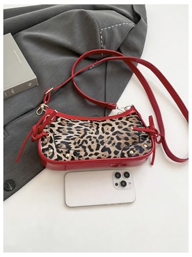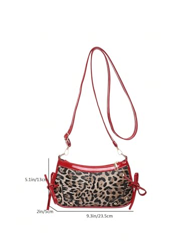 sizzling ! Women's Y2K Leopard Bowknot Crossbody Bags Studded Zipper Adjustable Strap Shoulder Handbags Purse