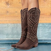 Highlights [Material] : These women's knee-high boots are crafted from high-quality PU leather that combines the luxurious feel and durability necessary for fall and winter footwear. The rubber outsole adds extra traction and stability for everyday wear. [Silhouette] : Designed with a low block heel that measures 2-3 inches, these boots offer a comfortable lift suitable for extended wear. The pointed toe shape ensures a modern and sleek appearance, enhancing the overall elegance of the boots. [Design Highlights] : Featuring decorative rivets and buckles, these boots showcase intricate embellishments that bring a exclusive flair and edgy appeal to any outfit. The knee-high length and zipper closure add convenience and style, making these boots a versatile addition to various fashion ensembles. [Occasions] : Perfect for both daily outings and outdoor activities, these boots suit a range of occasions from casual walks to more sophisticated events. Their elegant and minimalistic style makes them suitable for both Western fashion trends and modern minimalist looks. [Size Range] : Available in a variety of sizes to accommodate different needs, these boots come in sizes US6 to US10.5, ensuring a suitable fit for a wide audience. Perfect for everyday use. excellent materials and excellent craftsmanship ensure long-lasting durability.