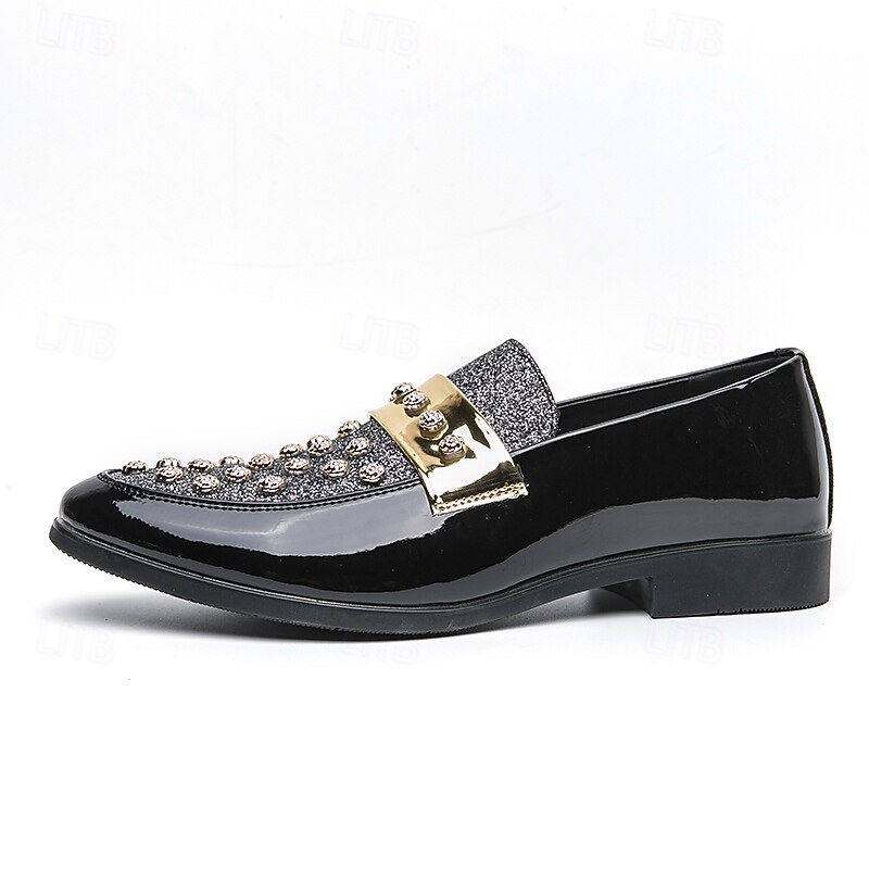 At time.prodaxen.com, we believe in providing our customers with only the best products. This Men's Black Patent Loafers with Studded Detail and Gold Strap, Fashionable Casual Shoes for Parties and Special Events is designed with attention to detail and high quality craftsmanship that you can see and feel. Whether you're looking for functionality, style, or both, this product delivers exceptional value.