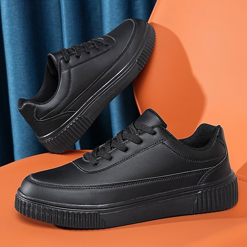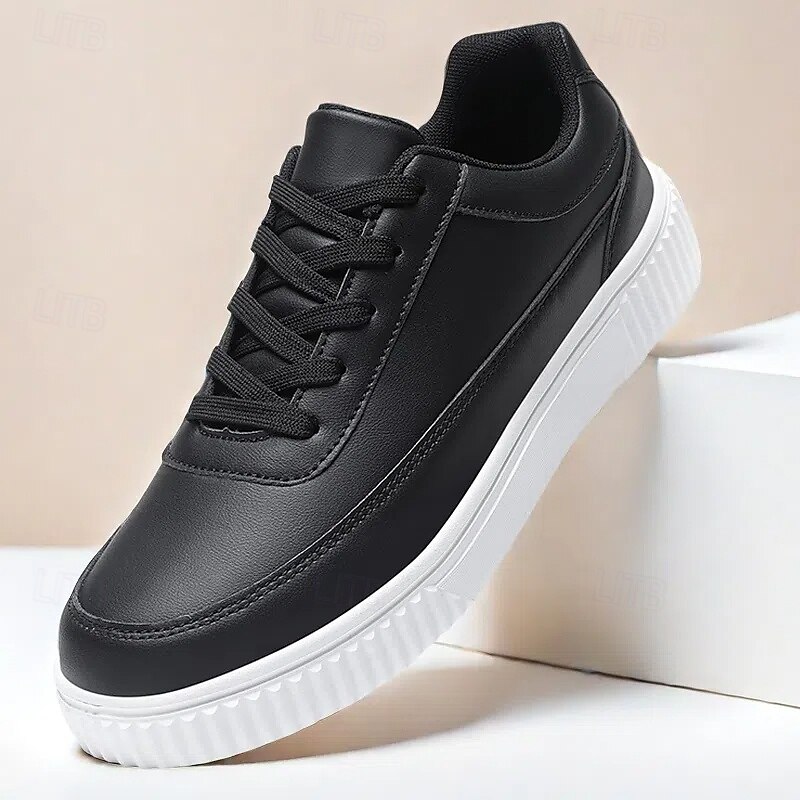 This Men's Black Faux Leather Sneakers with Cushioned Sole, cozy Lace-Up Design for Casual and Daily Wear combines elegant design with practical functionality. Every detail has been carefully considered to ensure you get the best possible experience. The first-class construction means this product will serve you well for years to come.