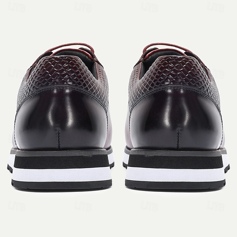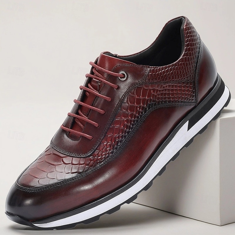 More information about Men's Burgundy Genuine Leather Crocodile Embossed Sneakers with Round Toe and Contrast Stitching, Elegant Luxury Shoes for Parties and Business Events