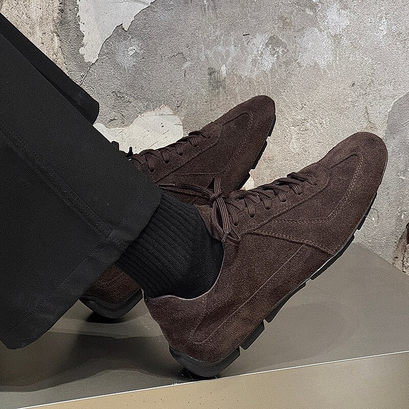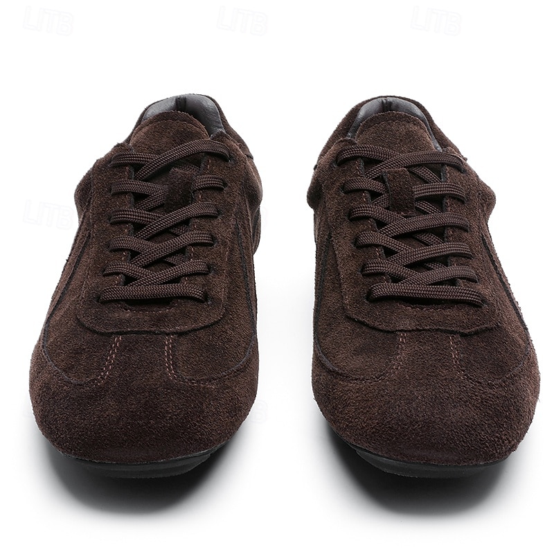 Why Choose Men's Dark Brown Suede Sneakers with White Rubber Sole, sophisticated and long-lasting Cowhide Leather, Perfect for Casual Outings, Travel and Relaxed Events?