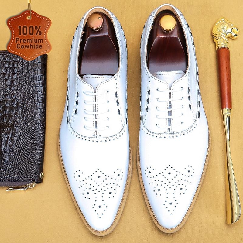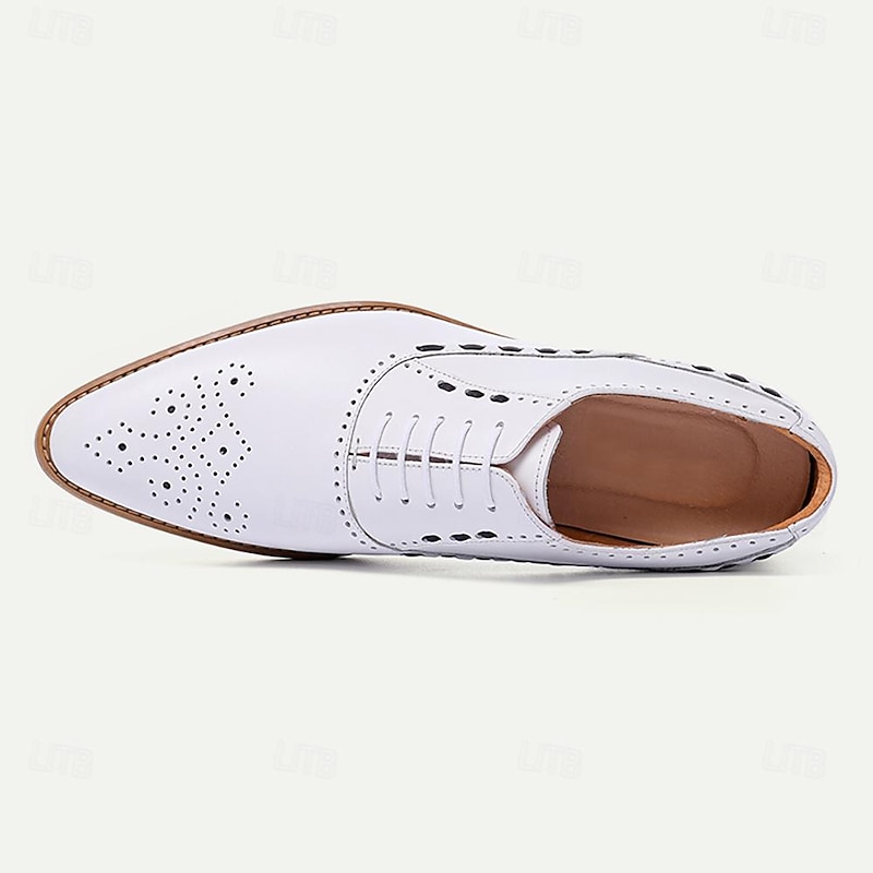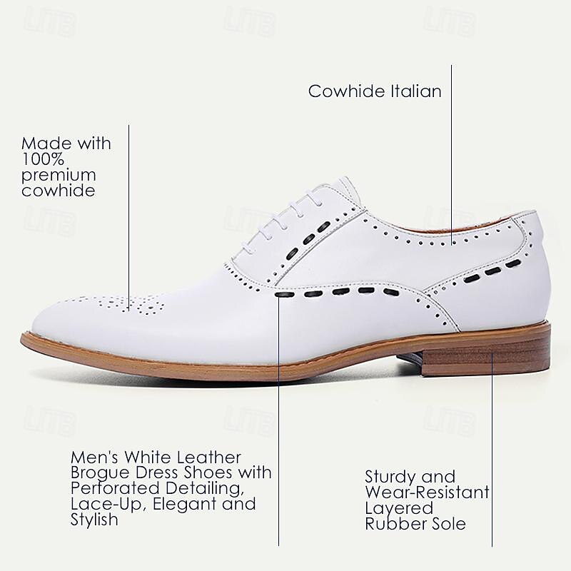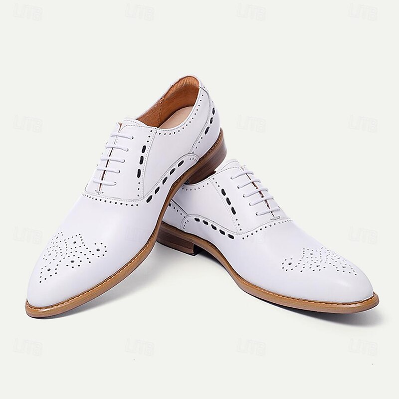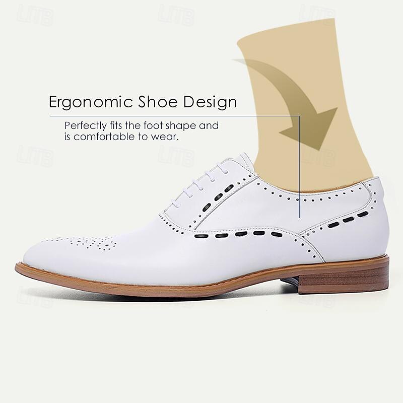 Men's White Brogue Dress Shoes - iconic Oxford Design for Weddings, Formal Events, and Business Wear