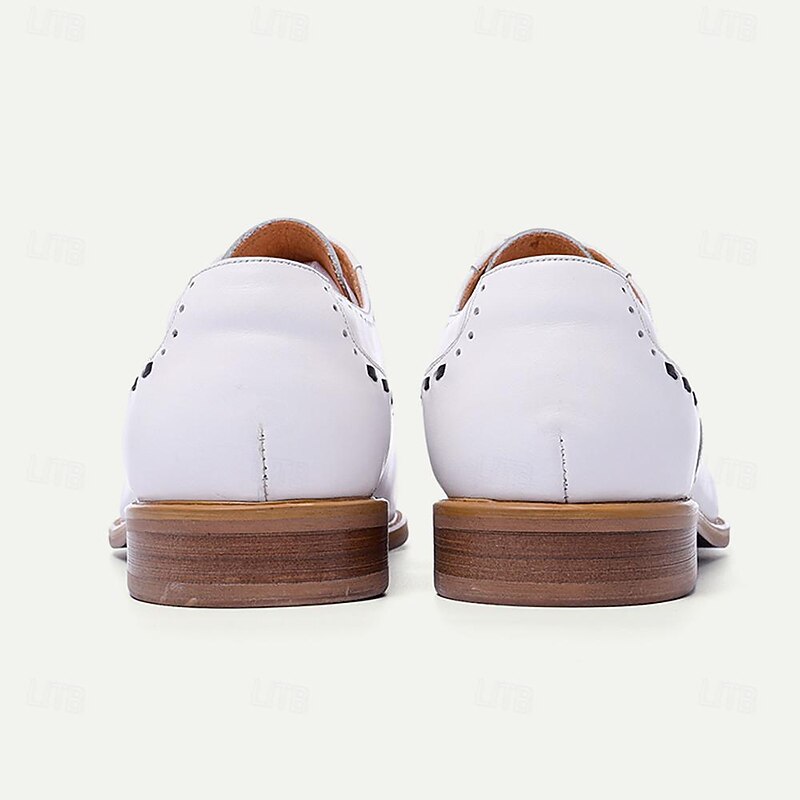 Highlights [Fabric]: Meticulously crafted from 100% Italian full-grain cowhide leather, these Men's White Brogue Dress Shoes offer a luxurious texture and durable finish. Complemented by a soft cowhide lining, the shoes provide exceptional comfort for prolonged wear. [Silhouette]: These dress shoes feature a classic oxford silhouette with a pointed toe and intricate brogue pattern. The sleek design and the slightly elevated wooden sole give these shoes a modern yet timeless appeal, perfect for making a statement at any formal event. [Design Highlights]: Highlighted by intricate Bullock carved detailing and geometric patterns, these shoes elevate the classic oxford style with a sophisticated color block design. The lace-up closure ensures a secure and customizable fit, accentuating both functionality and elegance. [Occasions]: Ideal for weddings, formal events, and business occasions, these shoes seamlessly transition from sophisticated workwear to upscale casual events. Their versatile style makes them a standout choice for any refined wardrobe, suitable for both professional and social gatherings. [Size Range]: Available in an extensive size range, these shoes are offered in US sizes 6 through 13, accommodating EU sizes 39 to 46 and UK sizes 5 to 12, ensuring a perfect fit for a wide variety of foot sizes. Perfect for everyday use. excellent materials and excellent craftsmanship ensure long-lasting durability.