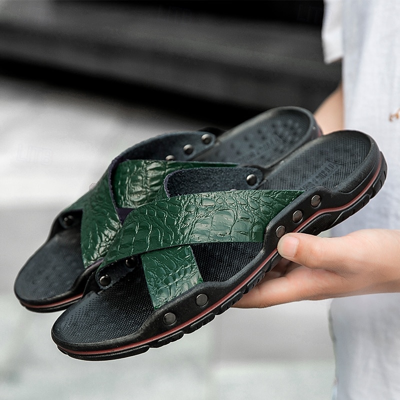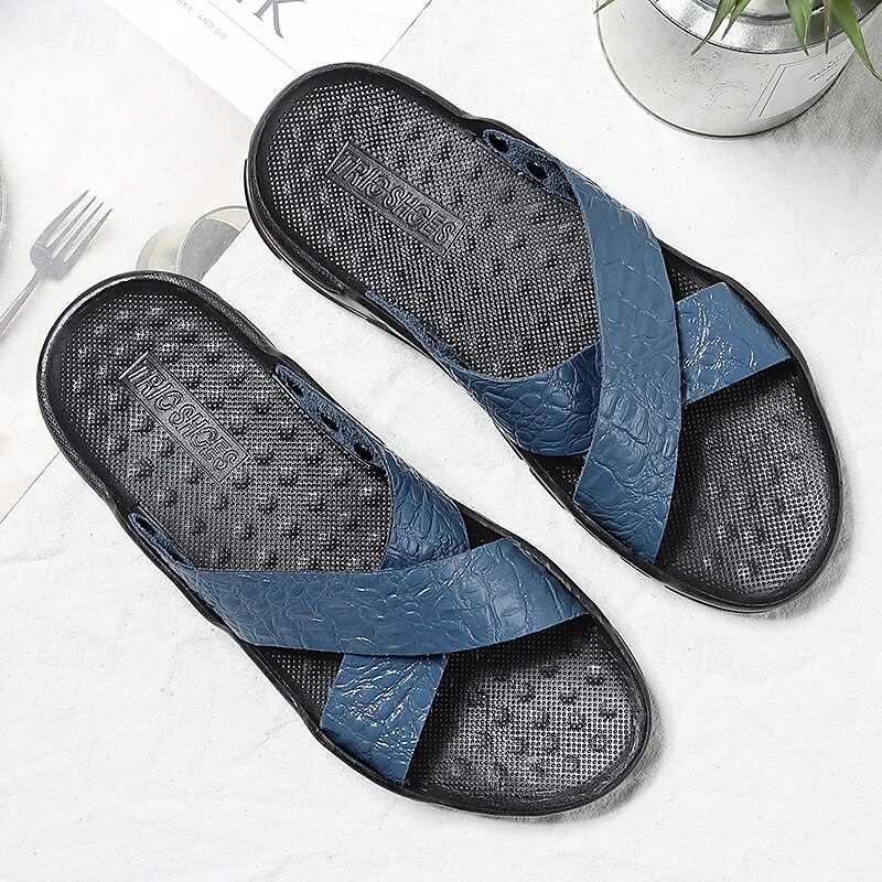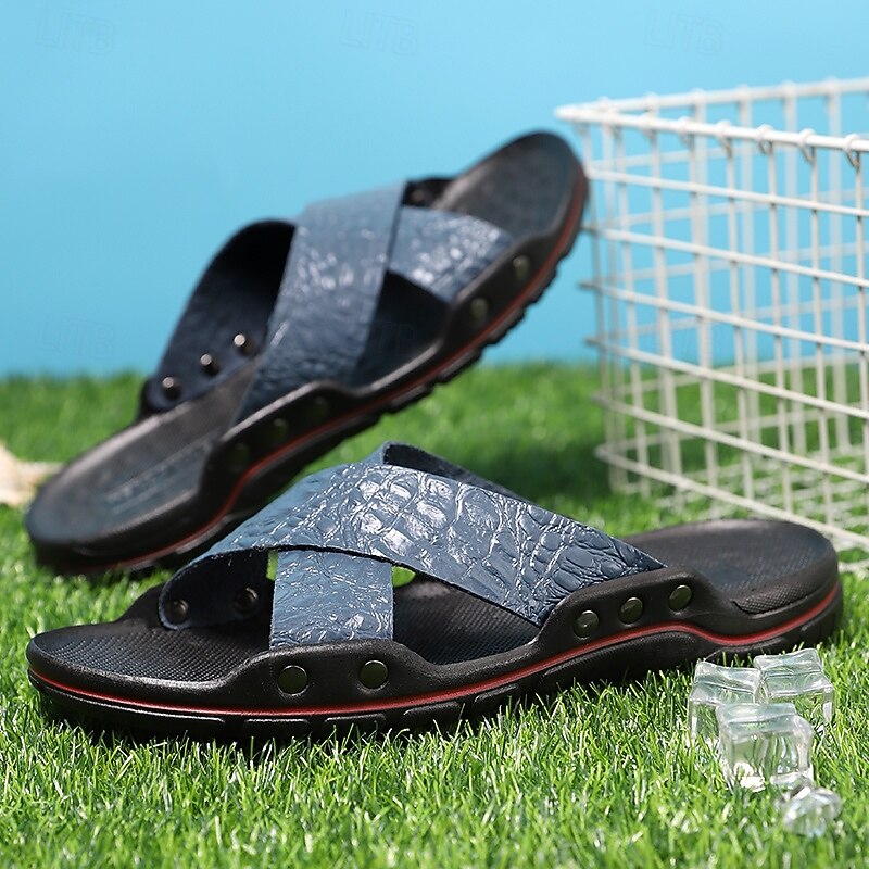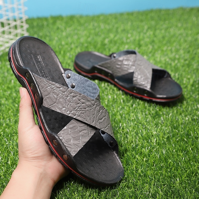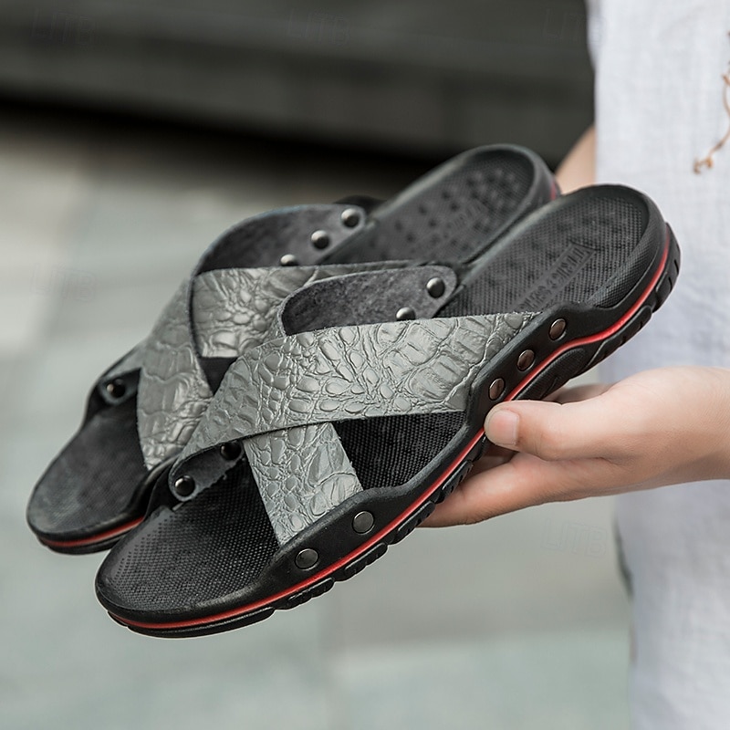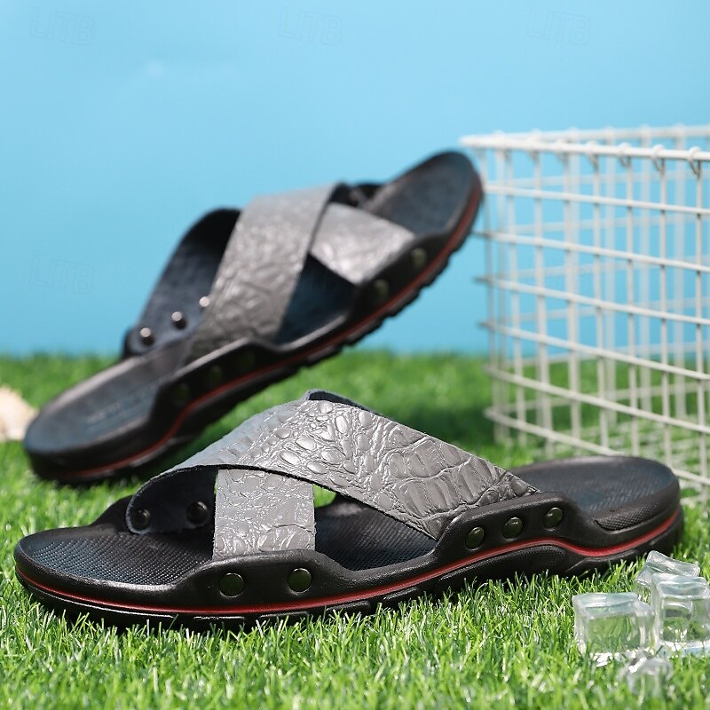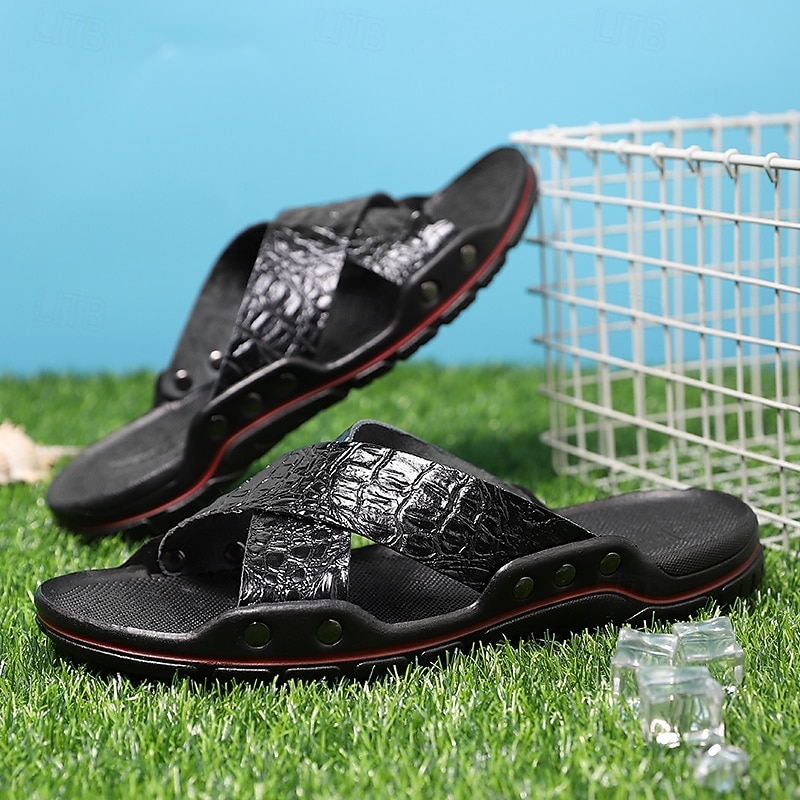 Why Choose Men's Black Crosstrapped Sandals with Crocodile Pattern and cushy Rubber Sole – Casual Outdoor Footwear for Summer, Beach and Daily Wear?