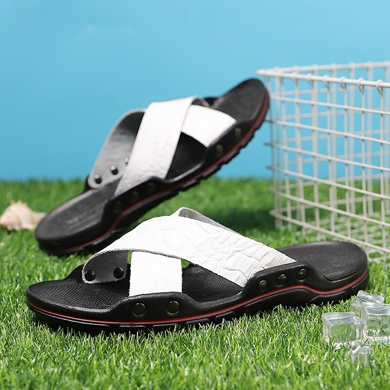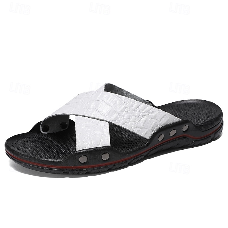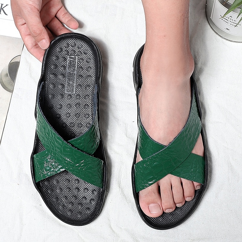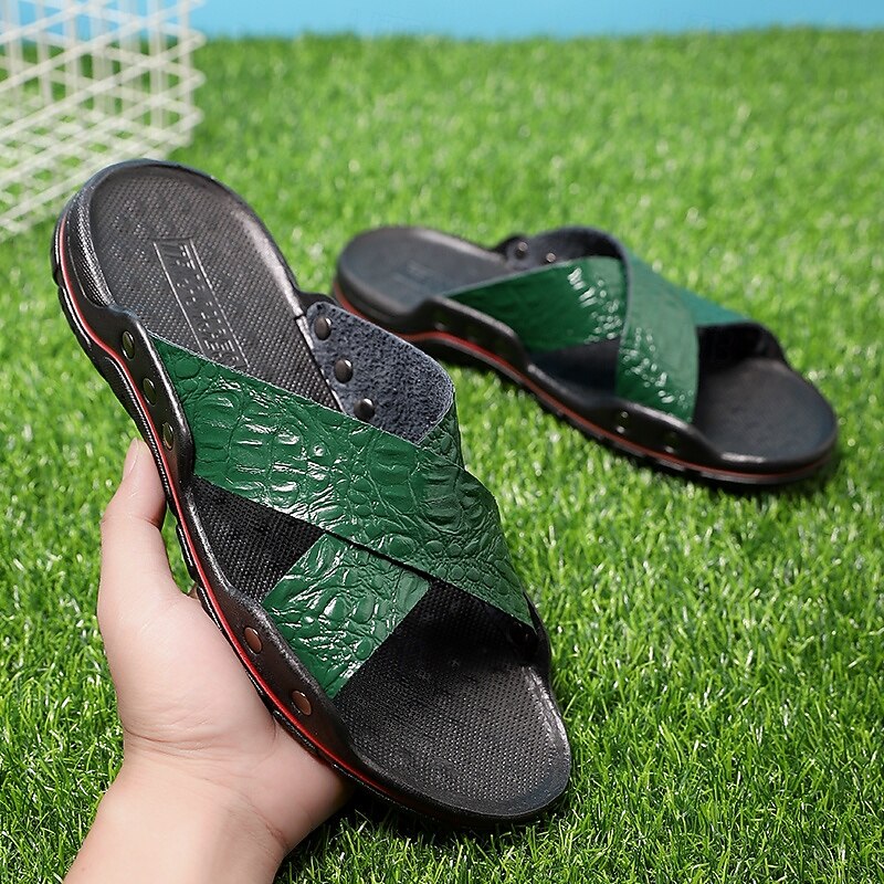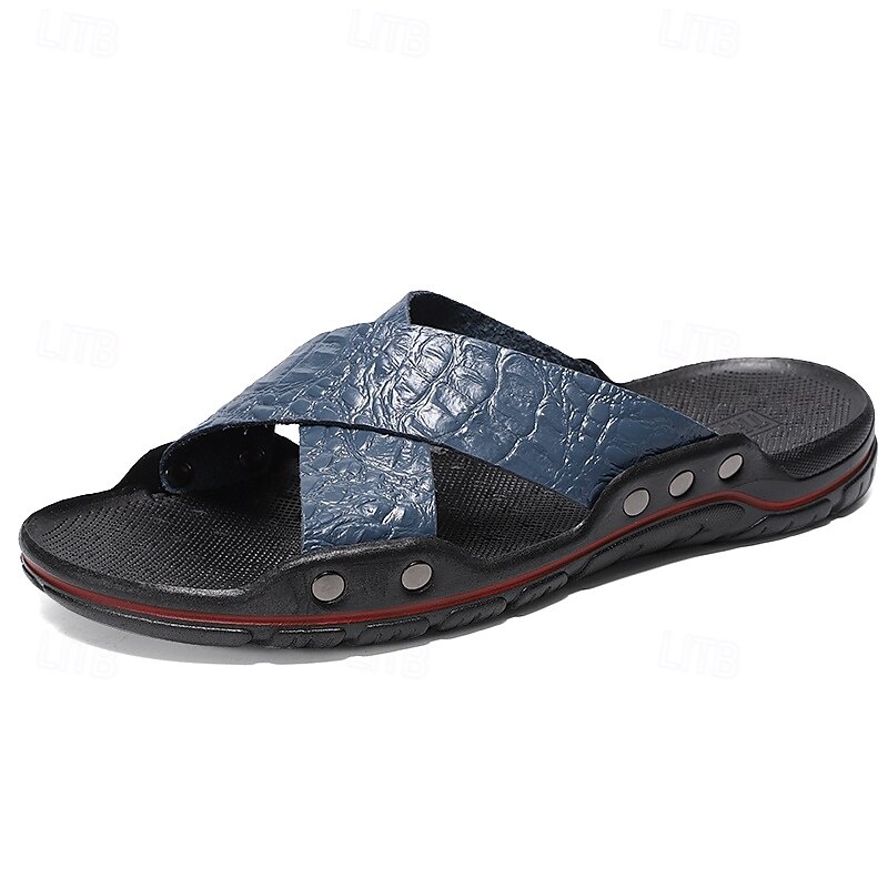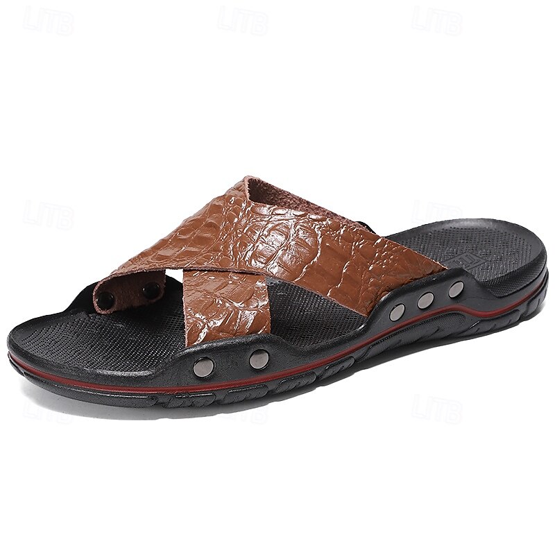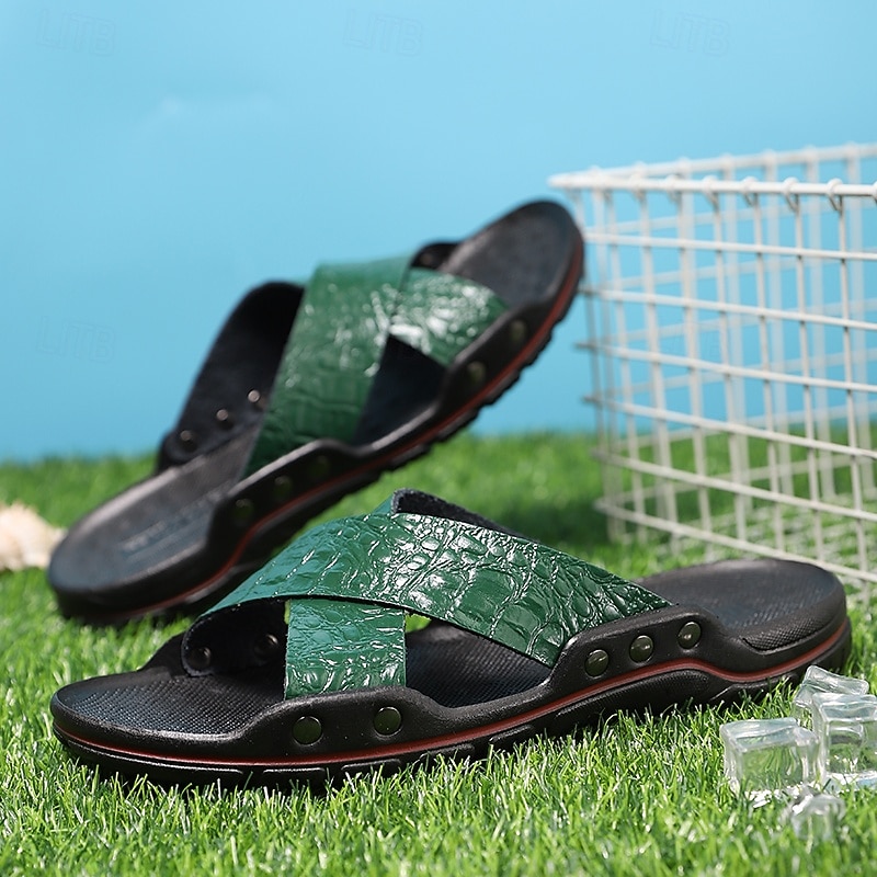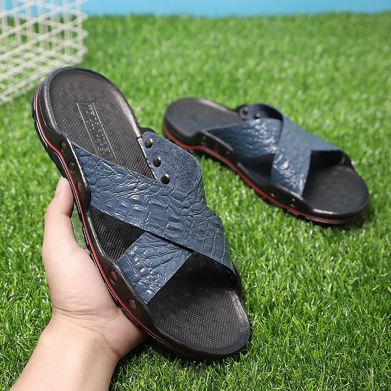Why Choose Men's Black Crosstrapped Sandals with Crocodile Pattern and cushy Rubber Sole – Casual Outdoor Footwear for Summer, Beach and Daily Wear?