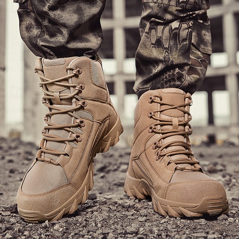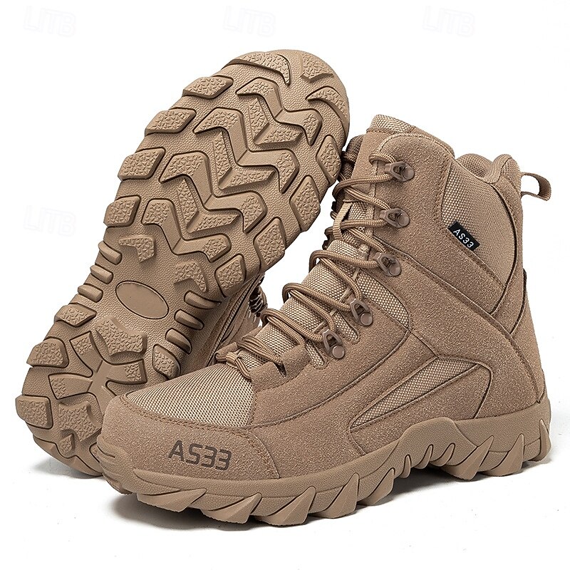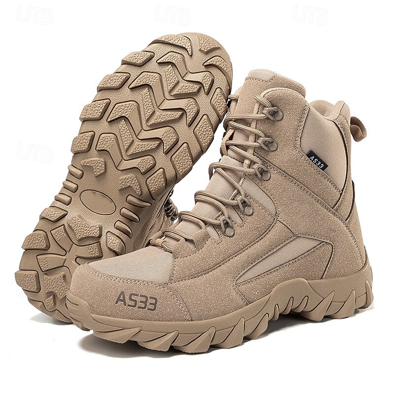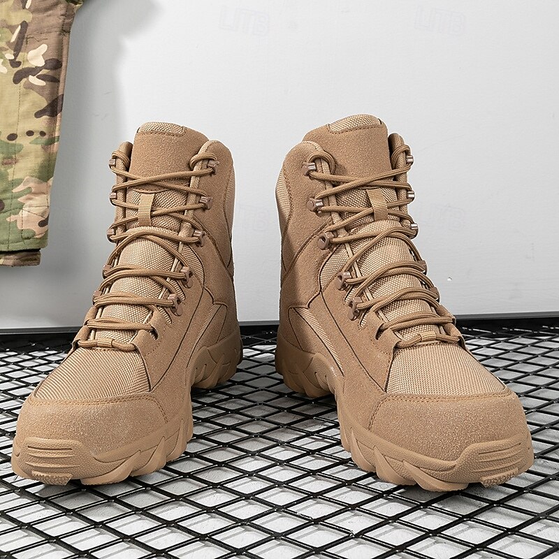 sizzling ! Men's High-Top Tactical Hiking Boots in Beige – Breathable Outdoor Combat Boots for Climbing, Camping and Survival Training