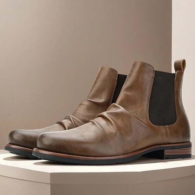 Why Choose Men's Brown Faux Leather Chelsea Boots – Sleek and contemporary with Elastic Sides, Ideal for Formal Meetings and Casual Outings?