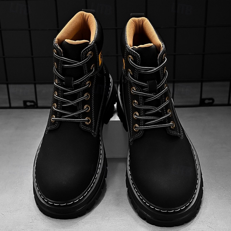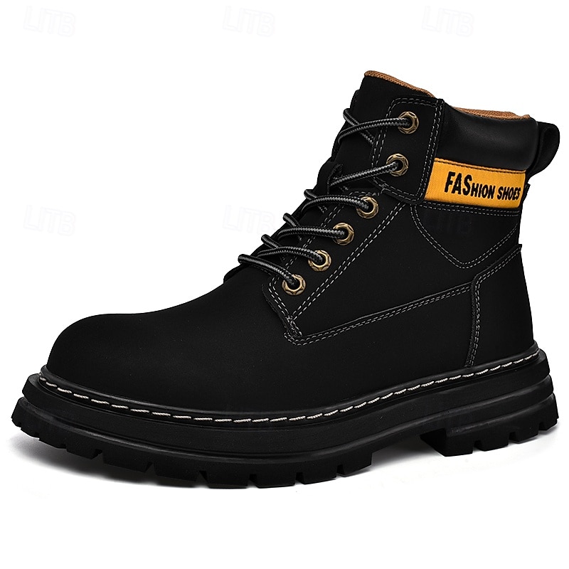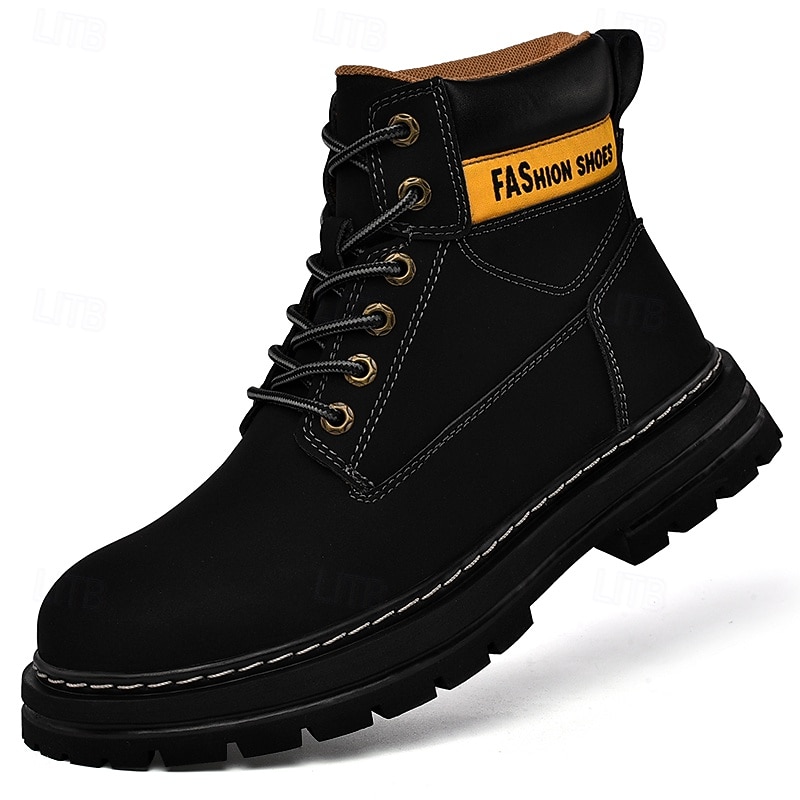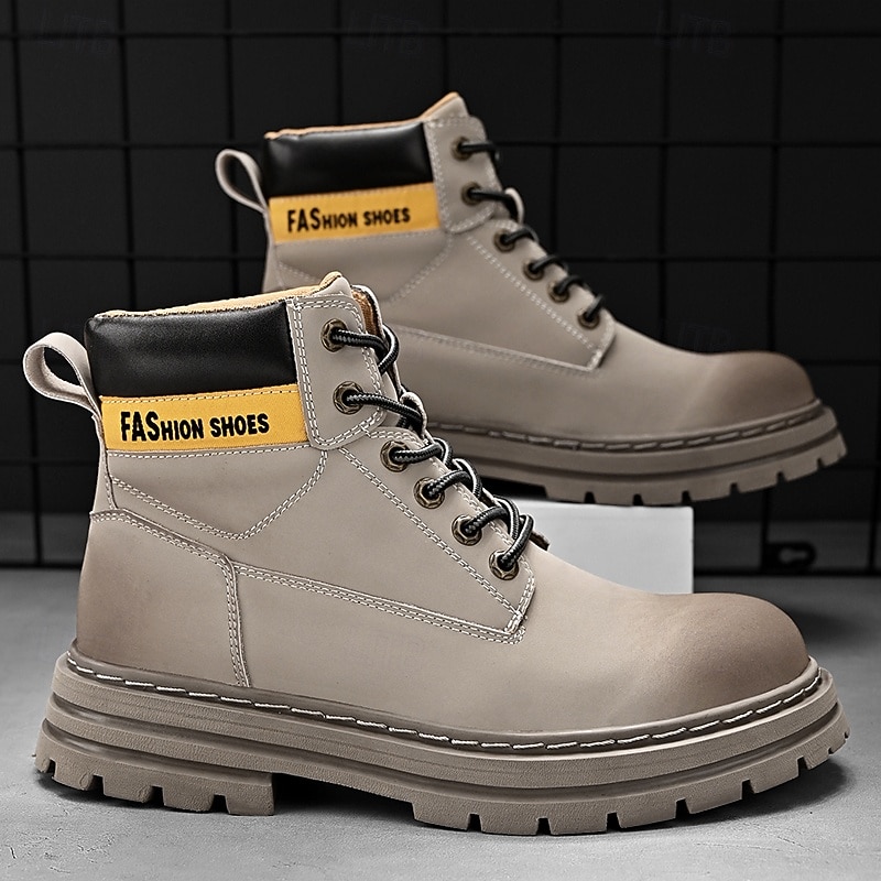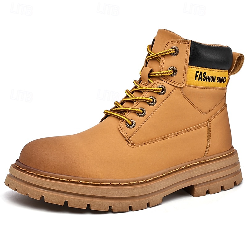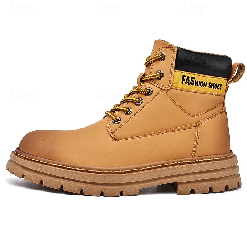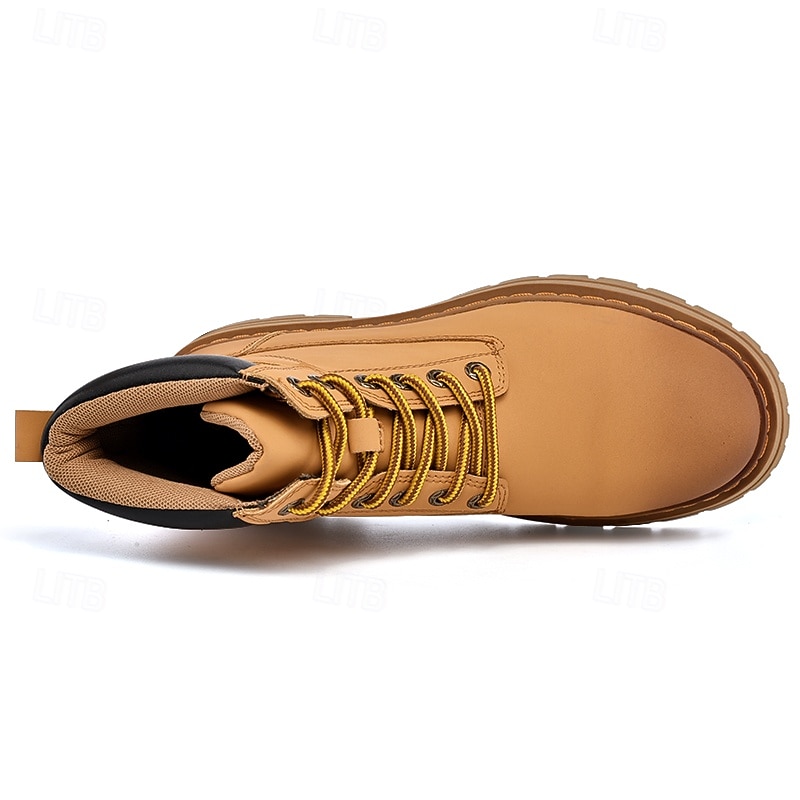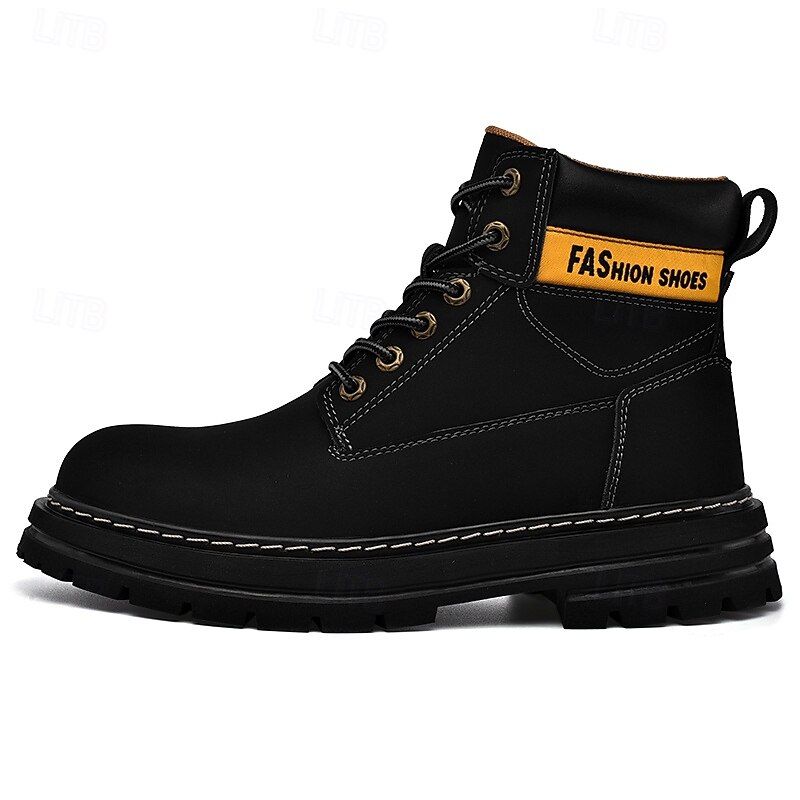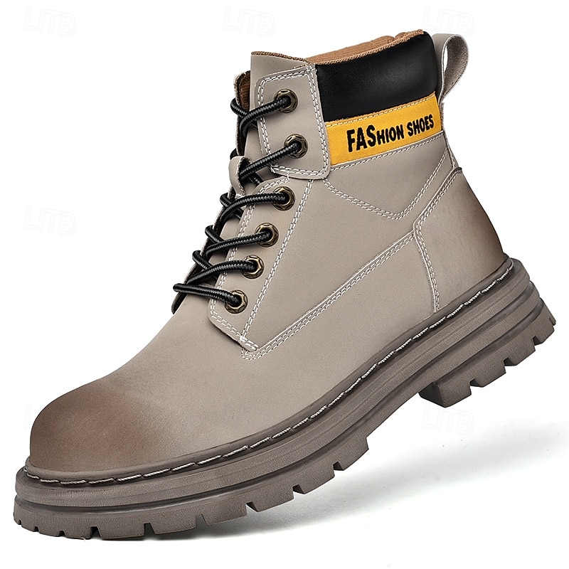 sizzling ! Men's Lace-Up Construction Work Boots – Anti-Slip Outdoor Safety Shoes with Cushioned Sole for Farming, Warehouse and Heavy Duty Work