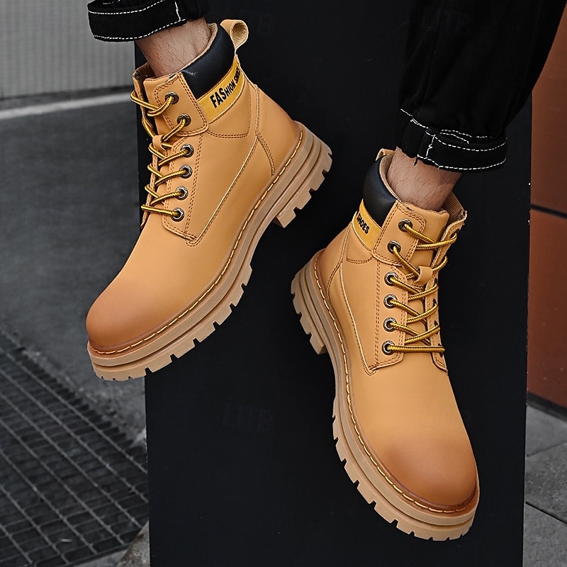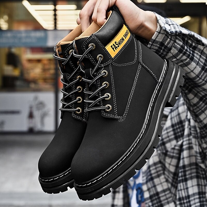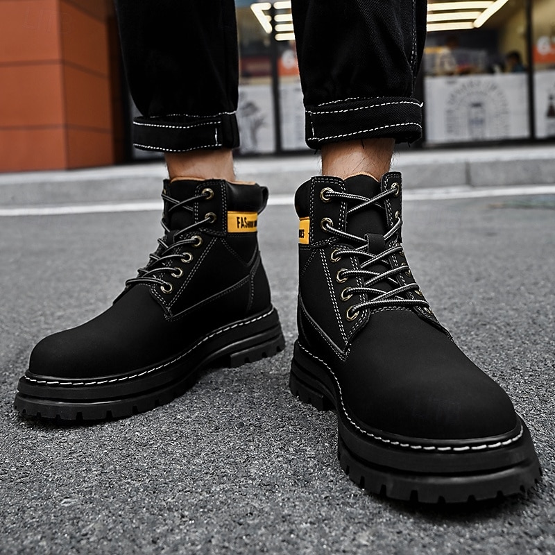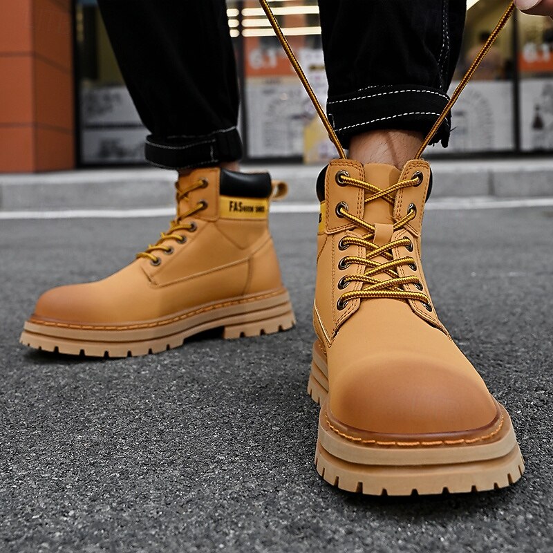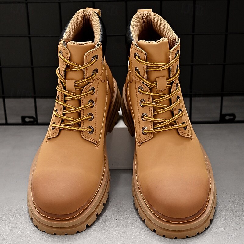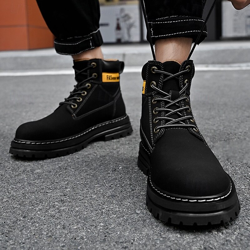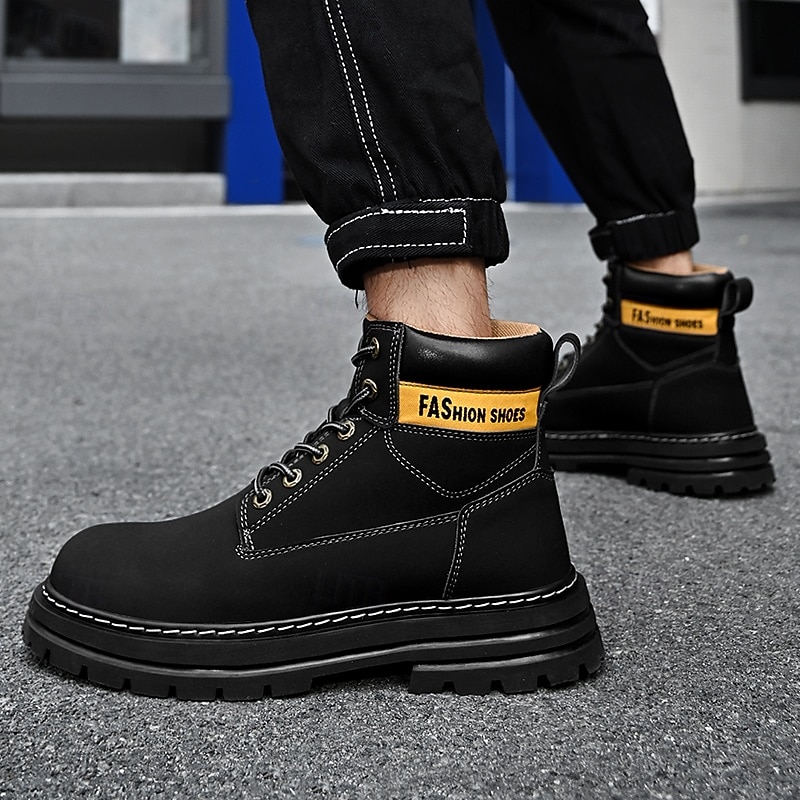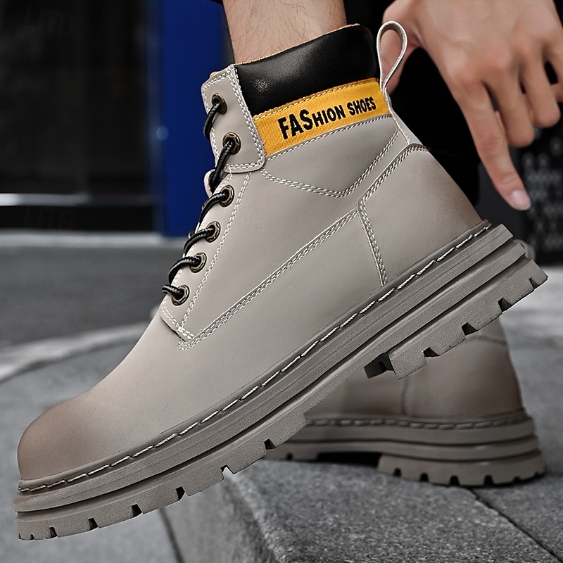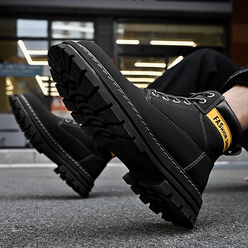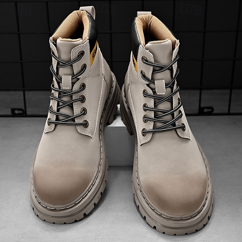 sizzling ! Men's Lace-Up Construction Work Boots – Anti-Slip Outdoor Safety Shoes with Cushioned Sole for Farming, Warehouse and Heavy Duty Work