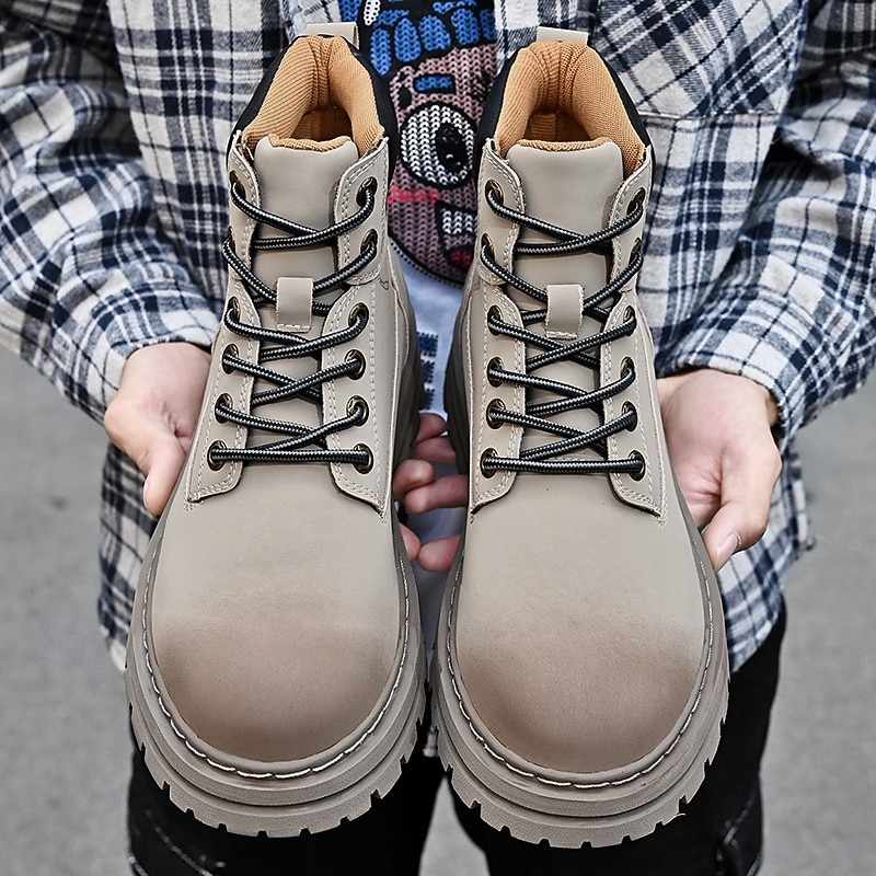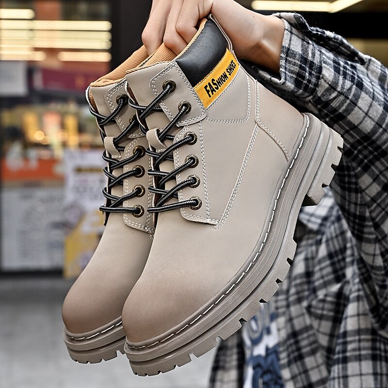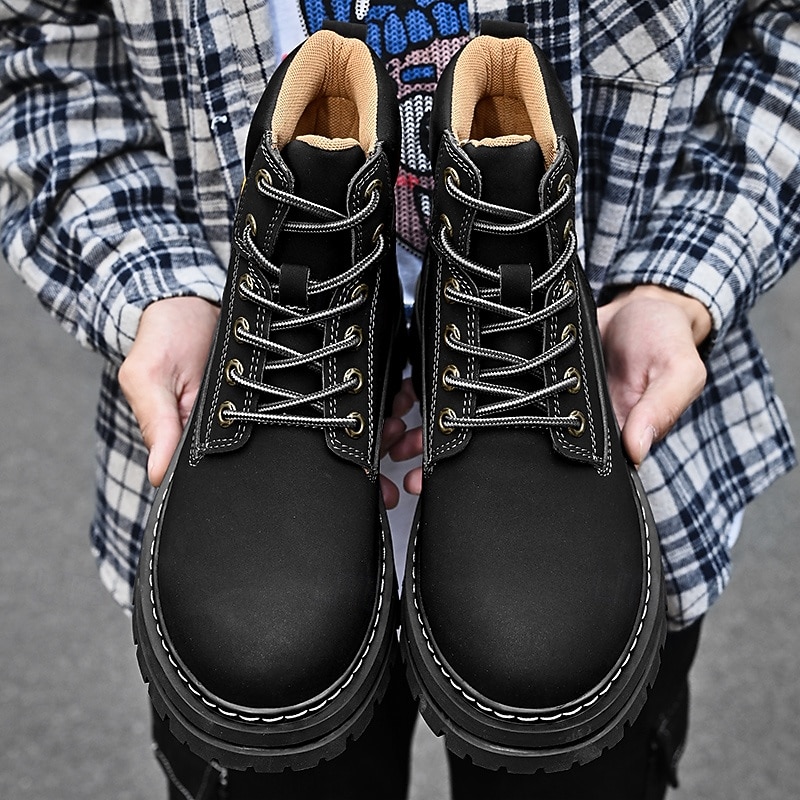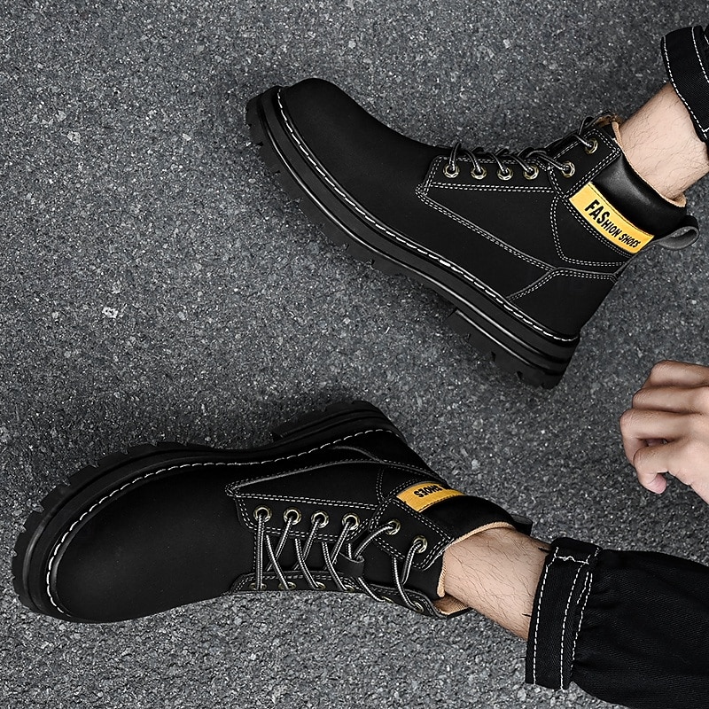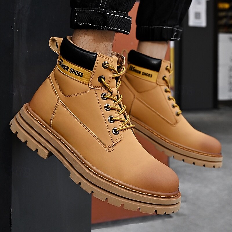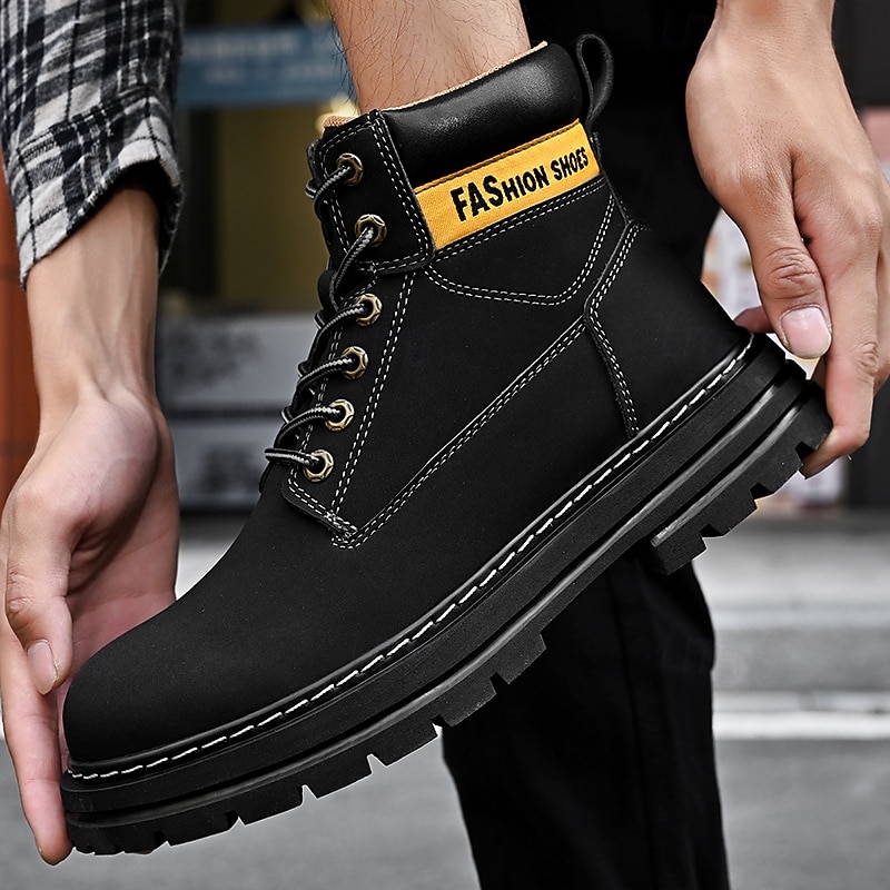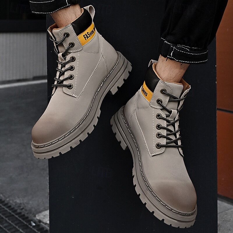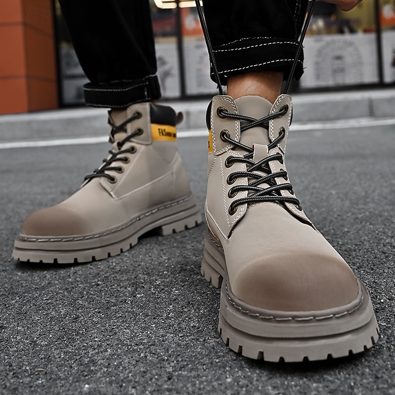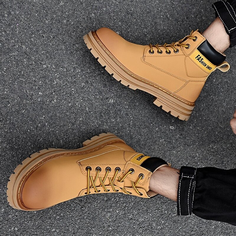 sizzling ! Men's Lace-Up Construction Work Boots – Anti-Slip Outdoor Safety Shoes with Cushioned Sole for Farming, Warehouse and Heavy Duty Work