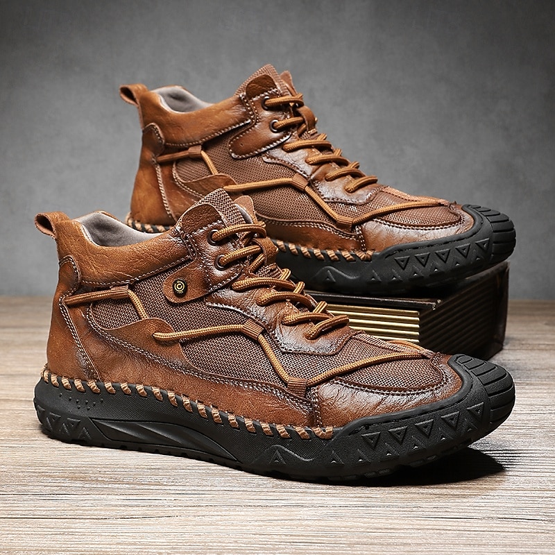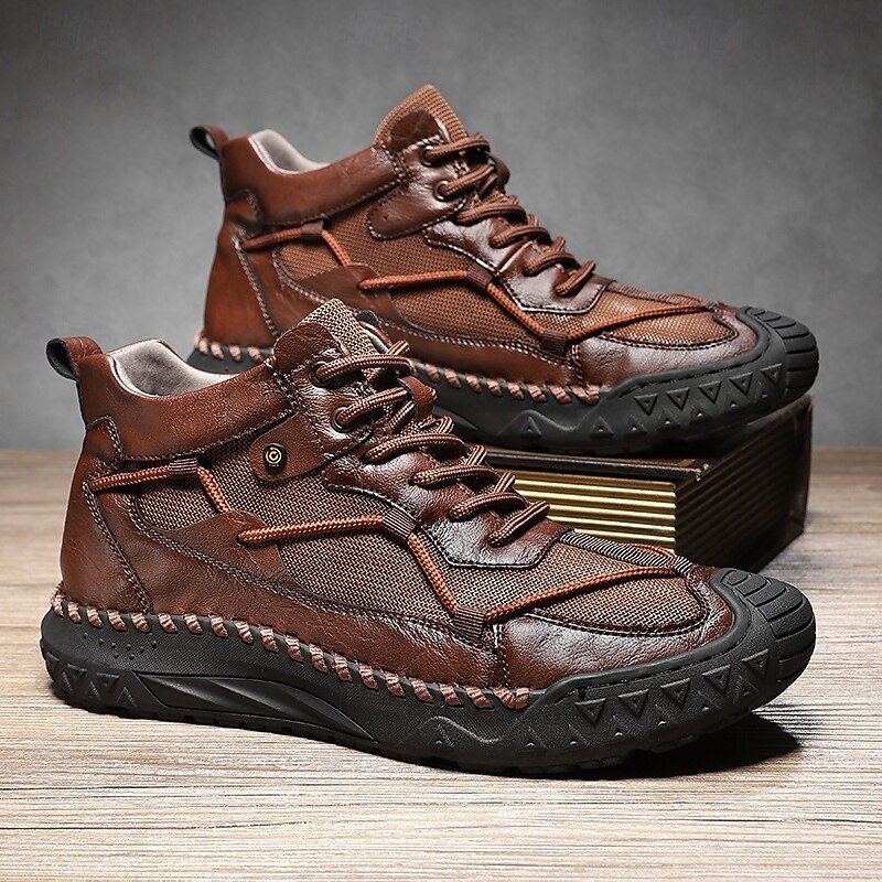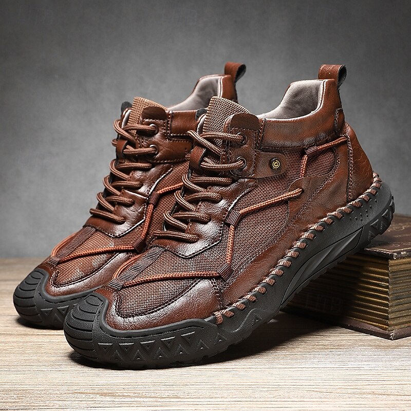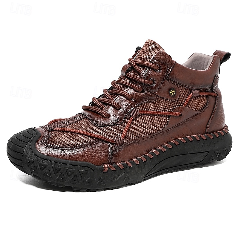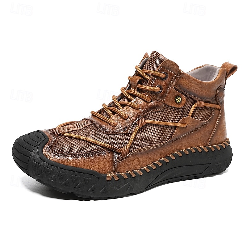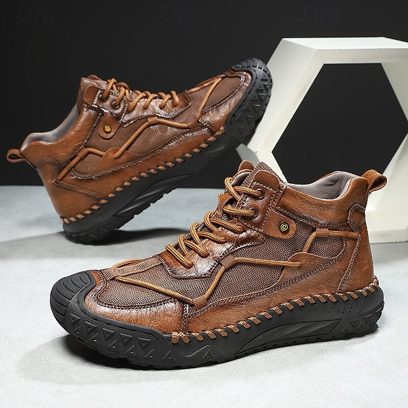 More information about Men's Brown Leather High-Top Casual Sneakers with Stitch Detailing and solid Rubber Sole – Fashion Comfort Shoes for Outdoor and Urban Wear