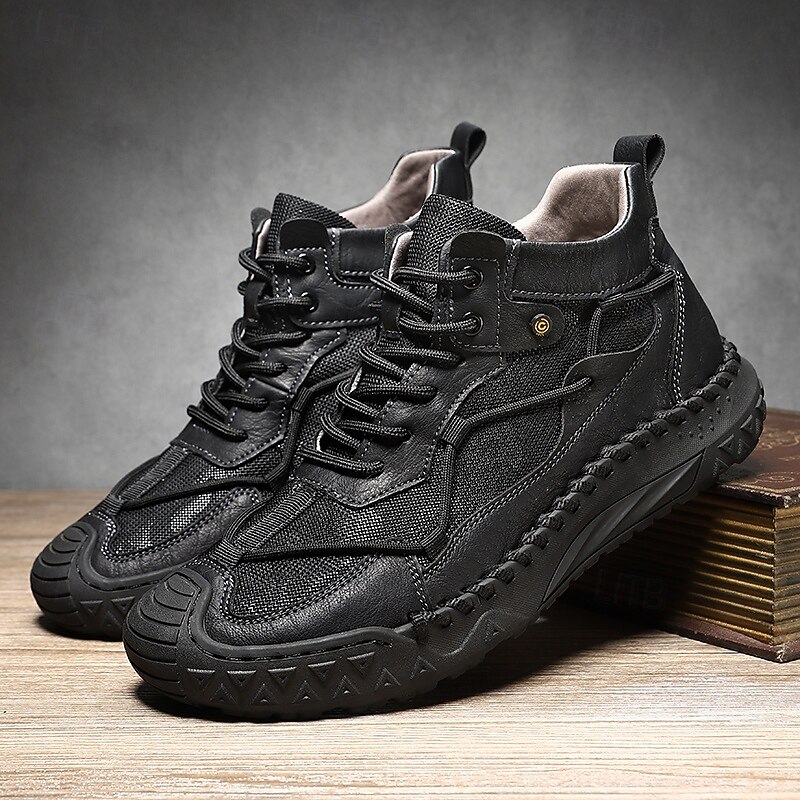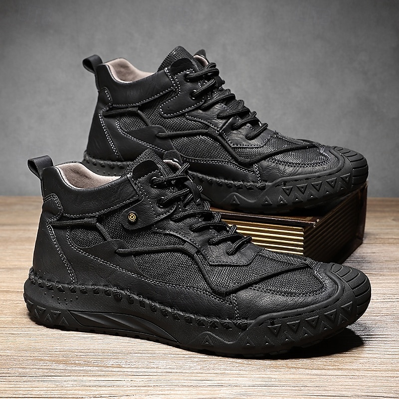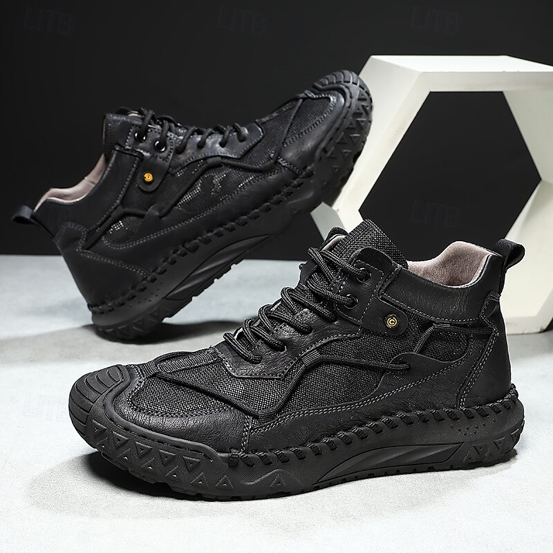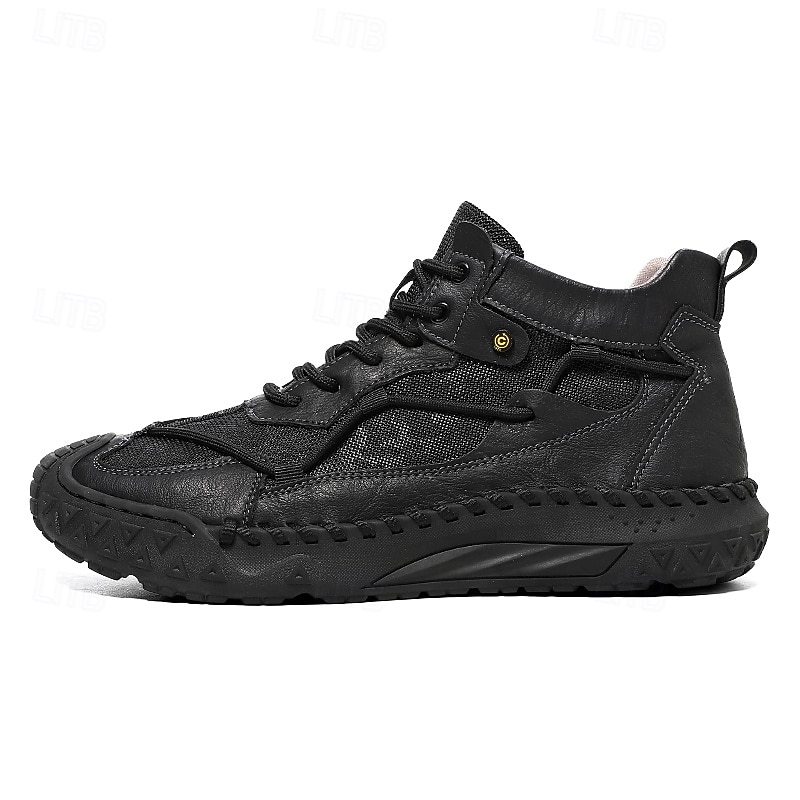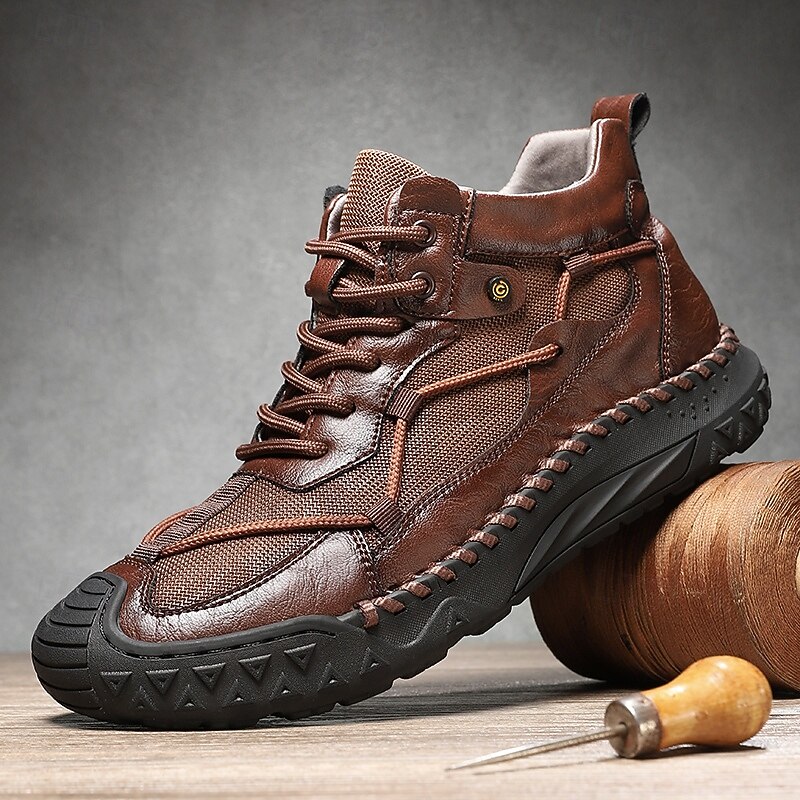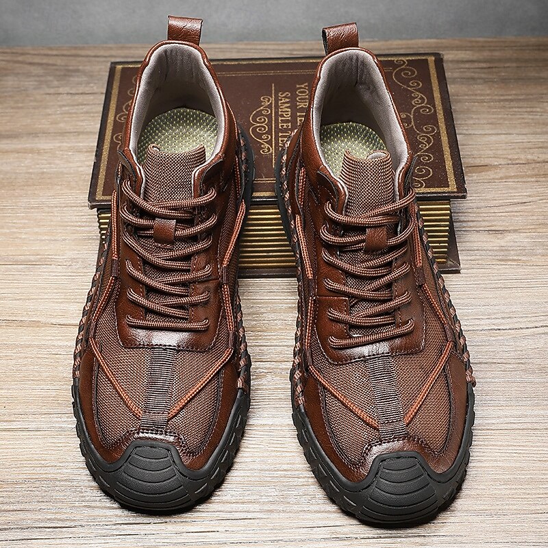 More information about Men's Brown Leather High-Top Casual Sneakers with Stitch Detailing and solid Rubber Sole – Fashion Comfort Shoes for Outdoor and Urban Wear
