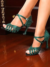 sizzling ! Women's Green Rhinestone Strappy Dance Heels - Sparkly Gatsby Style Sandals for Ballroom and Party Events