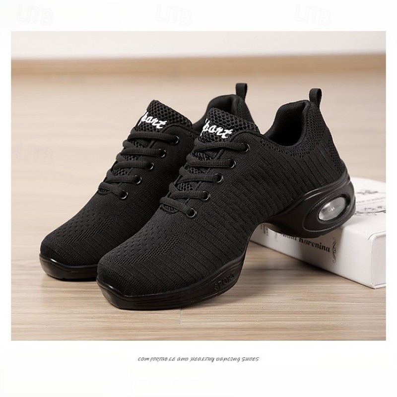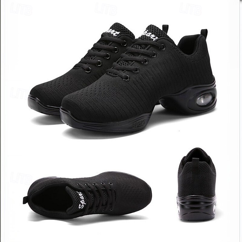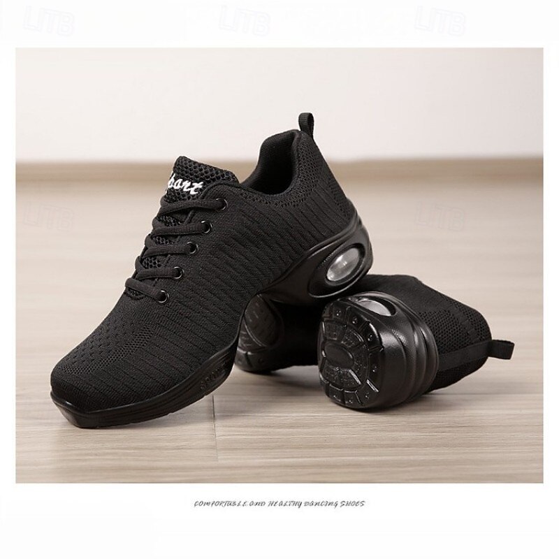 Women's Black Knit Dance Shoes – Lightweight, Air-Cushioned Sole, Breathable Design, impeccable for Latin, Jazz, and Fitness Dance