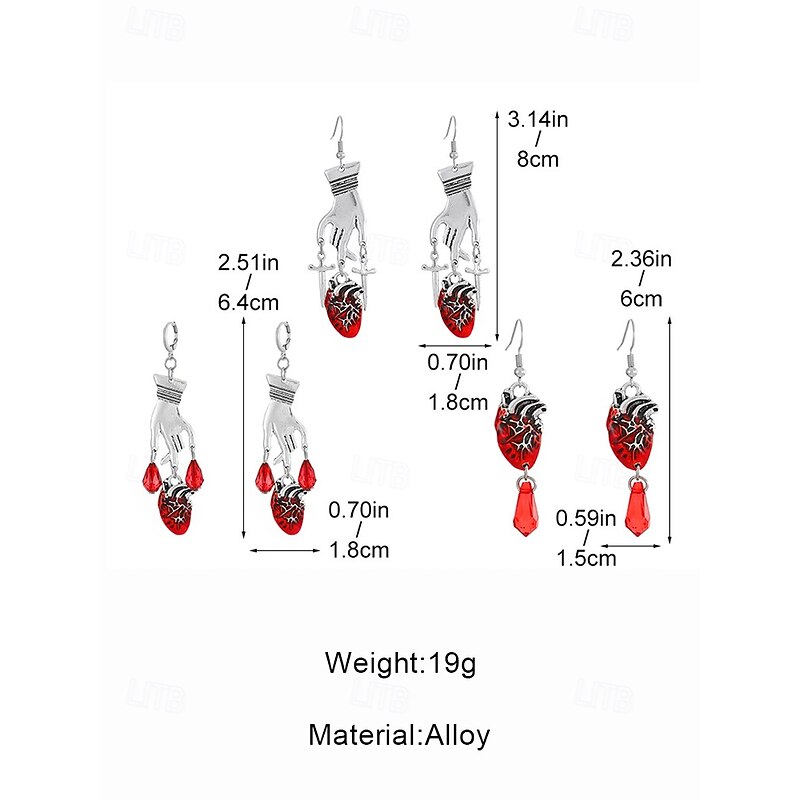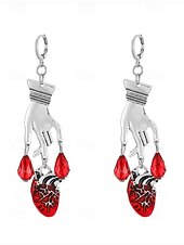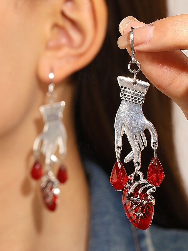 $7.99 - Women's Halloween Gothic Hand and Heart Earrings, Silver Drop Dangle Jewelry with Red Crystal Accents for Costume Parties and Cosplay 2025. Shop for cheap Halloween Accessories online? Buy at lightinthebox.com on sale today!