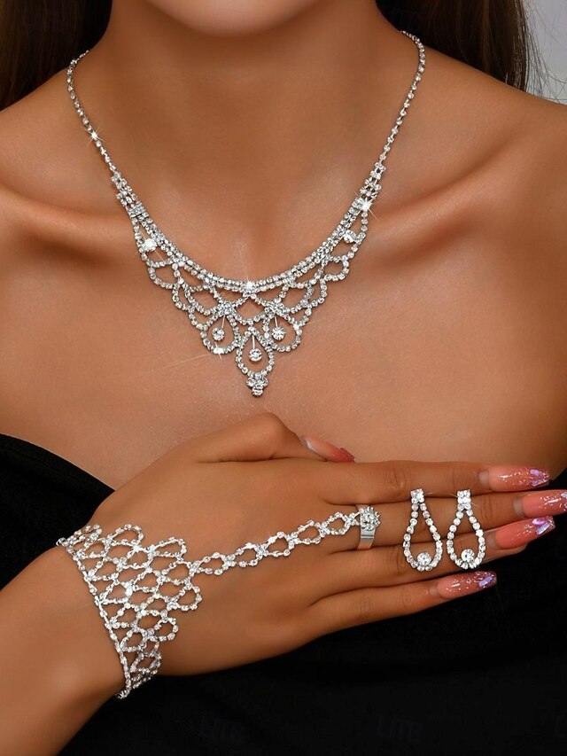$18.99 - Women's Crystal Bridal Jewelry Set - Elegant Rhinestone Necklace, Bracelet, Ring and Earrings for Weddings, Proms and Formal Occasions 2025. Shop for cheap Women's Necklace online? Buy at lightinthebox.com on sale today!