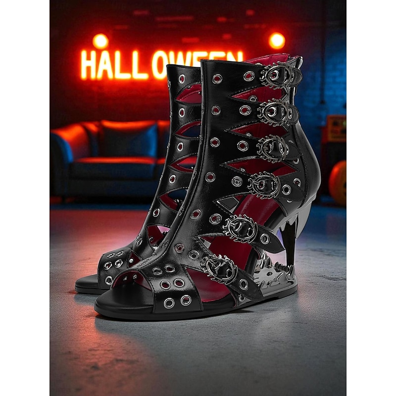 $109.99 - Women's Gothic Open-Toe Gladiator Sandals with Spiked Wedge Heels - Black Punk Cutout Shoes for Halloween, Cosplay and Alternative Fashion Looks 2025. Shop for cheap Shoes For Women online? Buy at lightinthebox.com on sale today!
