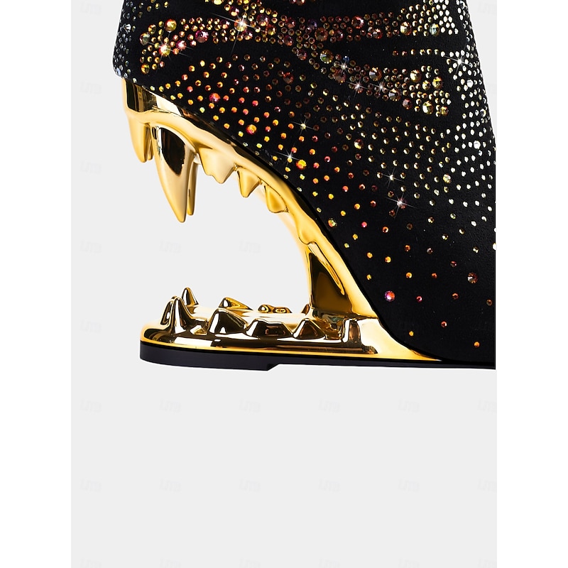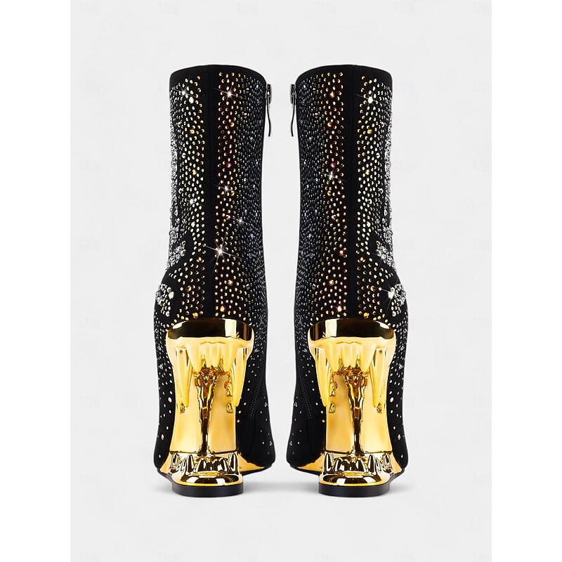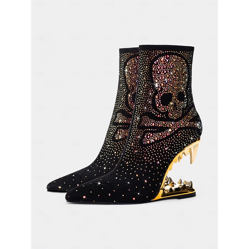 Why Choose Women's Black Skull Ankle Boots with Rhinestone Embellishments and Gold Cut-Out Heels – Bold Statement Heels for Gothic Fashion and Parties?