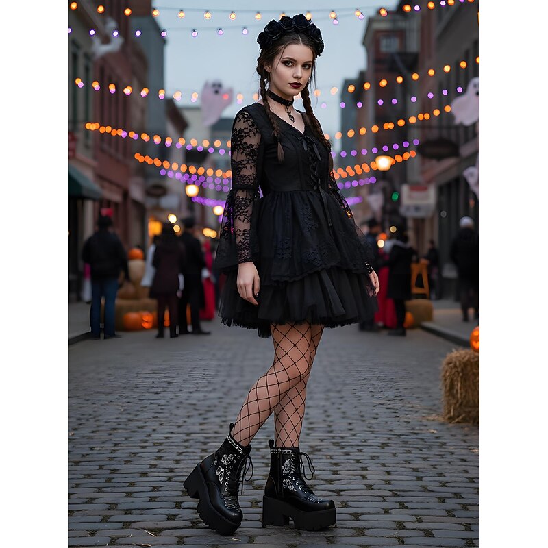 $59.99 - Women's Black Chunky Halloween Lace-Up Platform Boots with Butterfly Embroidery - Goth Streetwear Ankle Boots for Spooky Party and Daily Edgy Outfits 2025. Shop for cheap Shoes For Women online? Buy at lightinthebox.com on sale today!