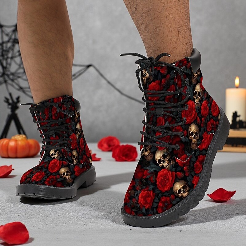 $69.99 - Men's Skull and Red Rose Combat Boots – Gothic Punk Lace-Up Ankle Boots for Halloween, Cosplay, Parties and Streetwear 2025. Shop for cheap Shoes For Men online? Buy at lightinthebox.com on sale today!