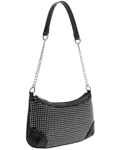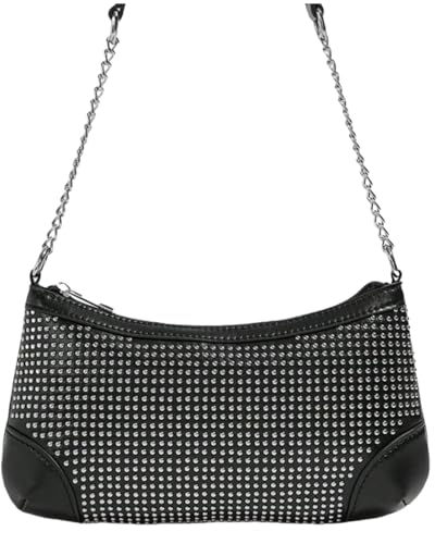 • fashionable DESIGN: Chic shoulder bag featuring complete-over silver studded detailing on black fabric with sleek leather trim accents and corner reinforcements