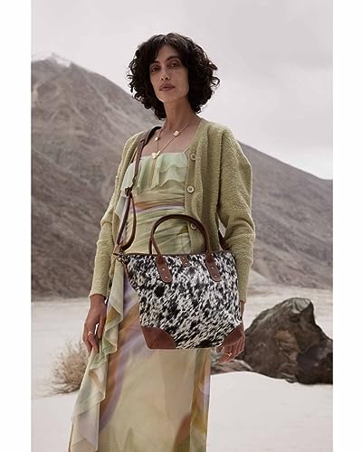 Fabric type: LeatherClosure type: ZipperLining: LeatherPERFECT EVERYDAY BAG - This enchanting bag features a glorious combination colors and textures. This lightweight and lovely shoulder bag is perfect for everyday use. Made of premium leather and high-quality material, this bag is built to last, with strap for convenience.FASHION SHOULDER BAG - With classic lines and balanced style, this bag presents beautiful hair-on hide in a mottled pattern, all with just the right leather accents. The roomy interior has several pockets for great organization. The reverse features a zippered pocket. Carrying handles and adjustable, removable shoulder strap in matching leather.QUALITY HANDBAG - Made from quality material, this unique bag follows a specific process in the creation of upcycled purses. Carry it anywhere and ensures that both the functionality and style of each piece.SPECIALLY CREATED - Each item is carefully hand-crafted and has their own unique characteristic due to the various recycled yet durable materials used in creating these masterpieces. With the right dimensions of Item Width 14, Item Height 10, Item Depth 2.5, Shoulder 22, Handle 5.5.UNIQUE GIFT IDEA - Get this wonderful bag for the special woman in your life. Perfect gift for your bff, girlfriend, mom, wife, sister, daughter, grandma for Christmas, Valentine's Day, Mother's Day or Birthday. Perfect for everyday use. premium materials and excellent craftsmanship ensure long-lasting durability.